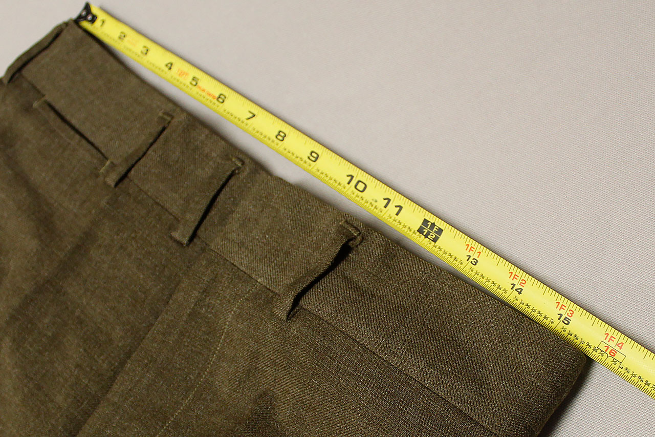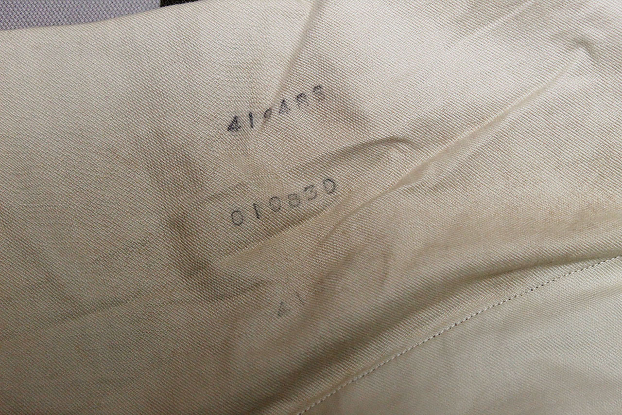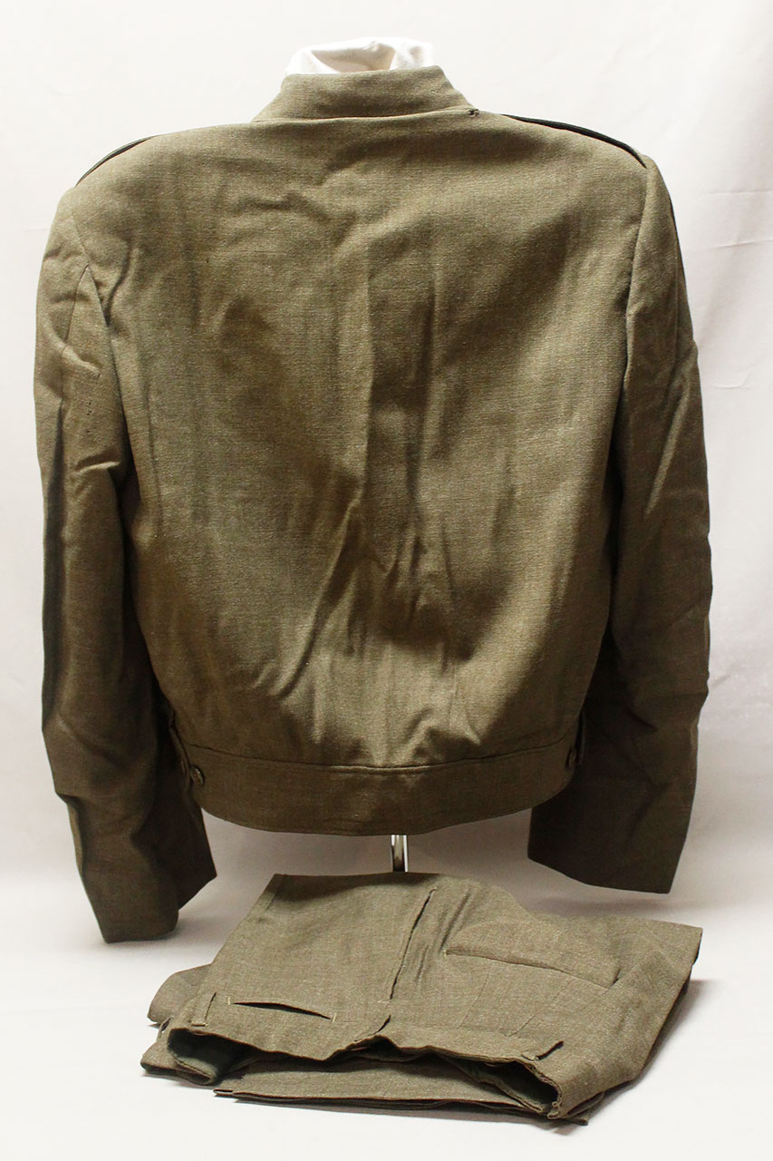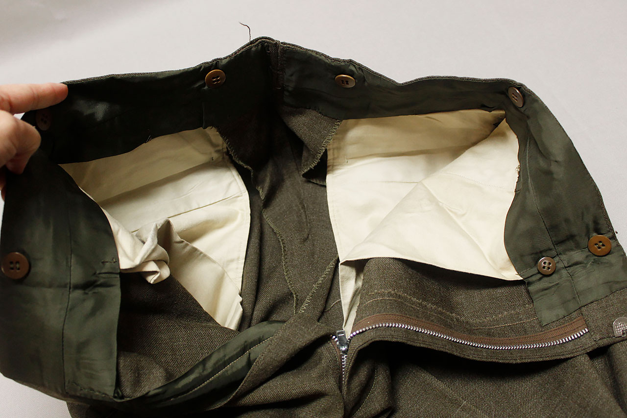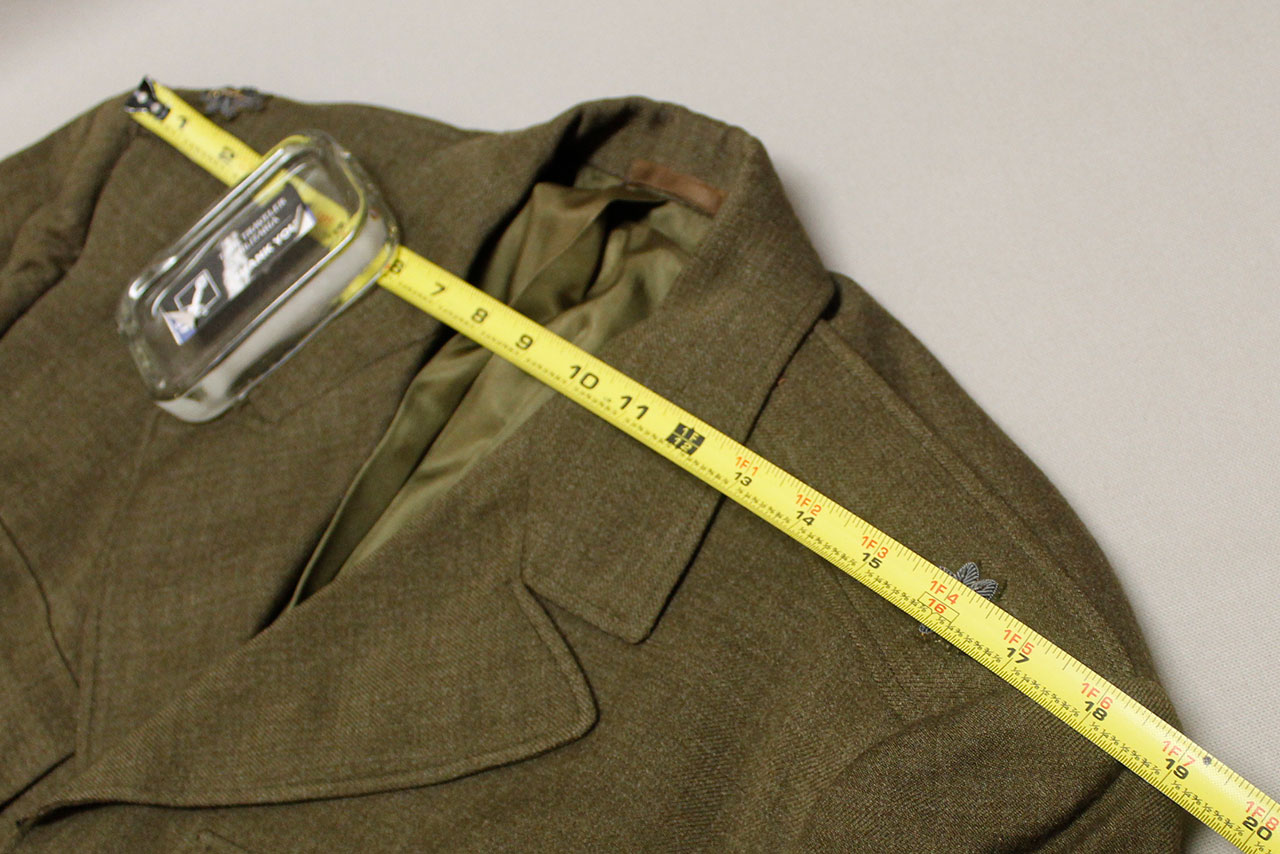 U.S. Army Officer OD Wool Field Jacket “Ike Jacket” with Pants. Nice bullion shoulder strap rank insignia on wool field jacket. Named to Major Frank Von Sholly and dated 12/1953 on tag inside jacket. Wool pants also has military laundry marks. Worn and used condition with several scattered moth nips, however, displays well overall.