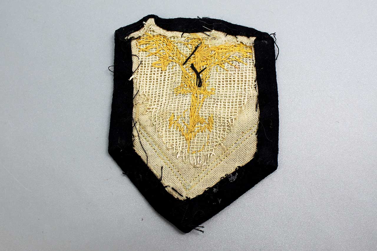 United States Navy WAVES Bullion Sleeve Insignia. I believe this one is for US Naval Academy midshipmen second class. Most likely 1940s (ww2) era. This is a relatively smaller size than standard navy rank insignia, which was utilized for WAVES. Size approximately 4 1/8 inches x 3 inches. Arm sleeve rating. Worn condition. The patch does not react to UV light (does not glow under blacklight).
