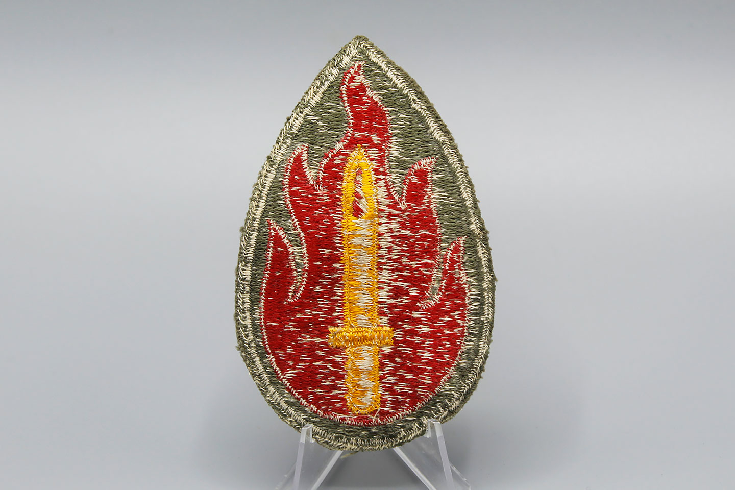 U.S. WW2 63rd Infantry Division “Blood and Fire” shoulder sleeve insignia (patch). Worn and used condition.
