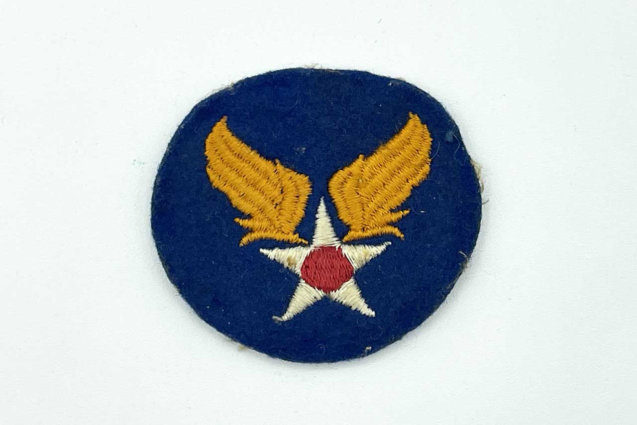 WW2 United States Army Air Force (AAF) Headquarters Shoulder Sleeve Insignia (Patch). This is the wool felt variation. The patch does not react to UV light (does not glow under blacklight). Worn condition.