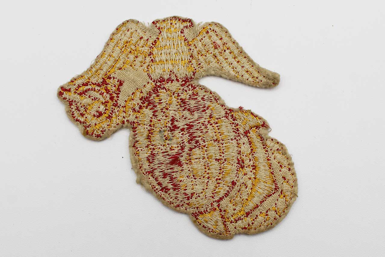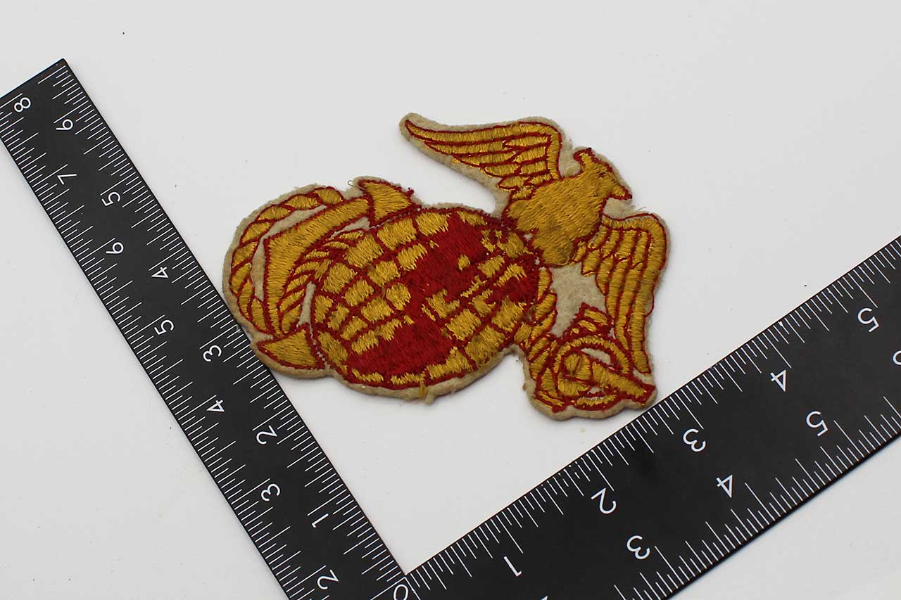 United States Marine Corps (USMC) PX Jacket Patch. Worn condition. Size approximately 4 inches x 4 inches. The patch does not react to UV light (does not glow under blacklight). Most likely 1940s-1960s era. Worn condition.