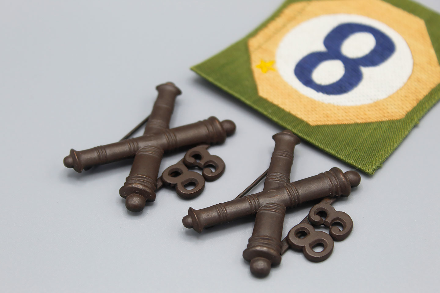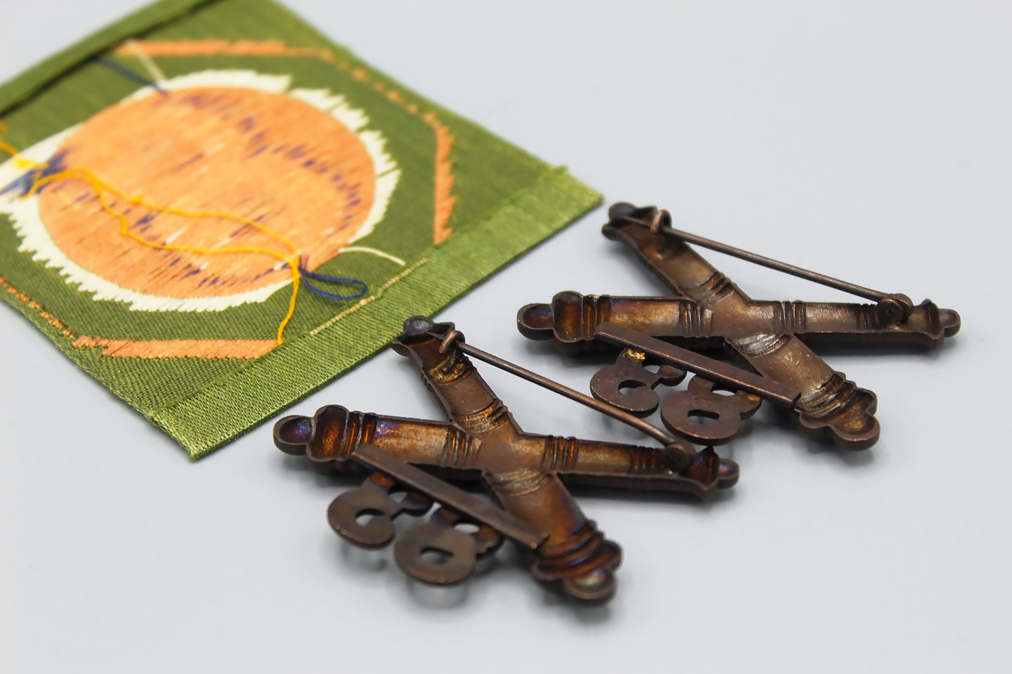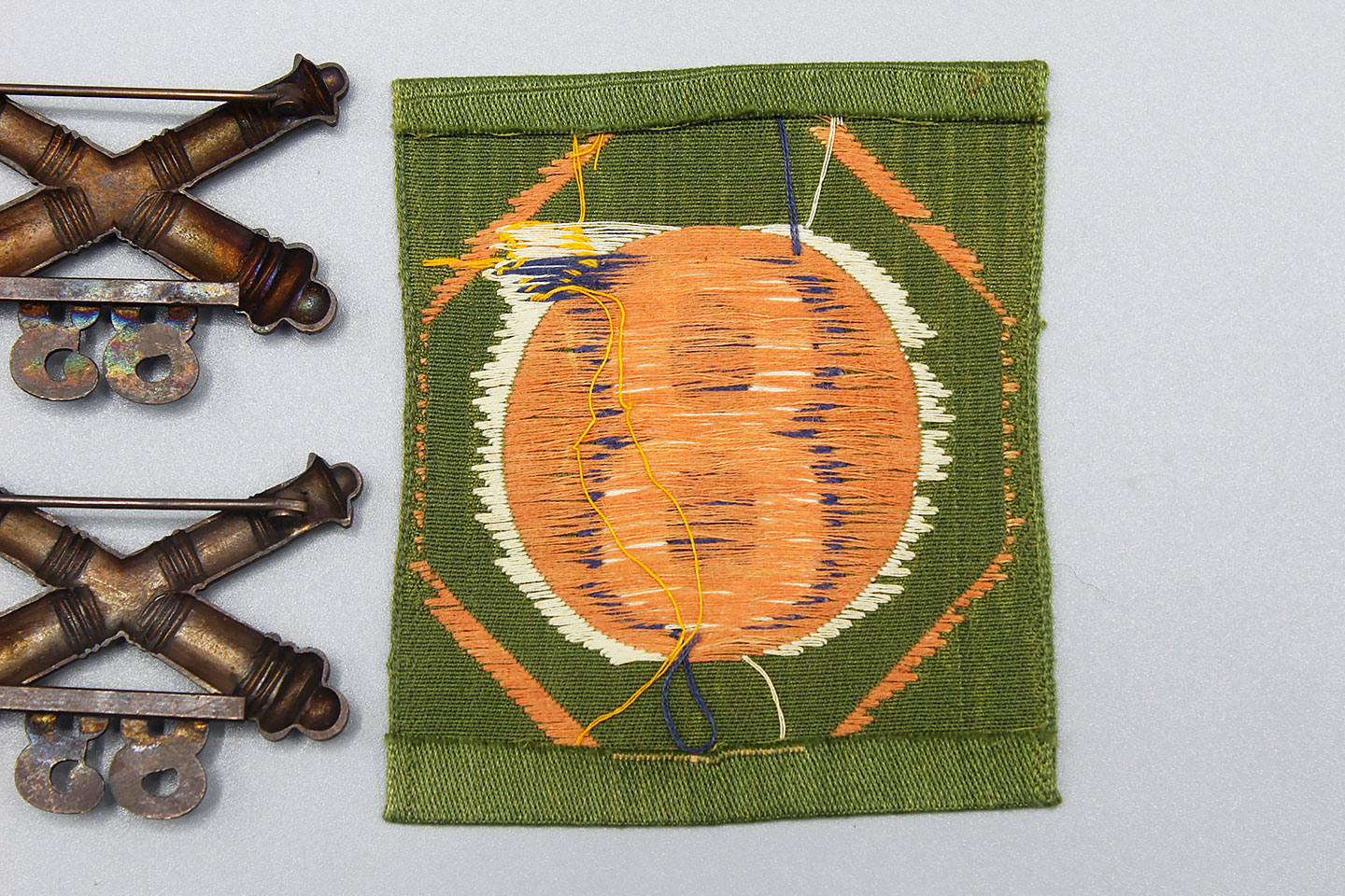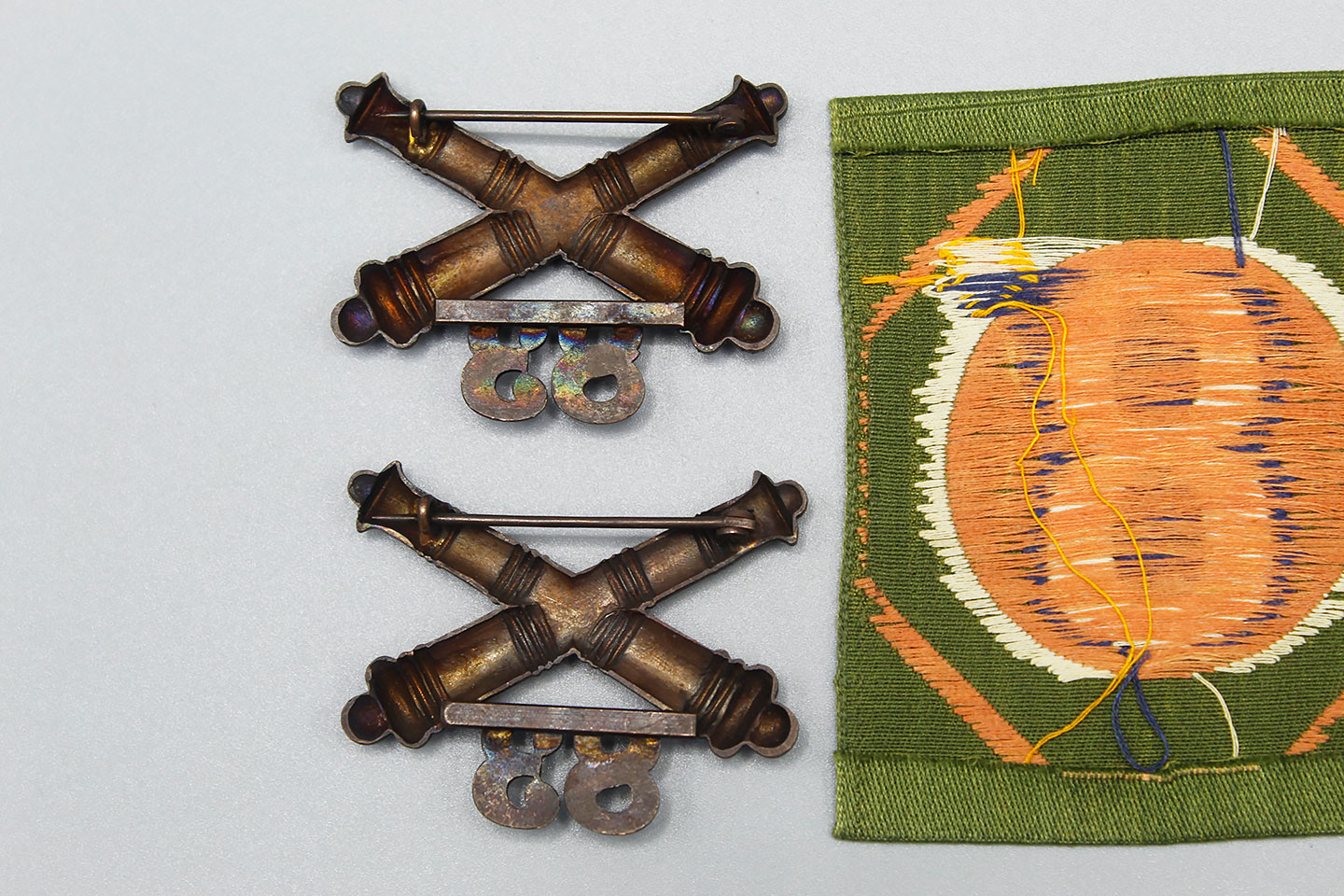United States Pre-WW1 8th division patch and 83rd artillery collar insignia pair. Worn condition.