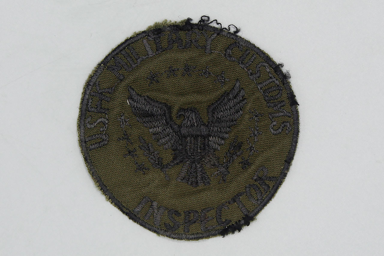 USFK (United States Forces Korea) Military Customs Inspector Patch. Subdued patch. Size approximately 2 1/2 inches across. I believe this one is 1950s-1960s era. Worn and used condition.