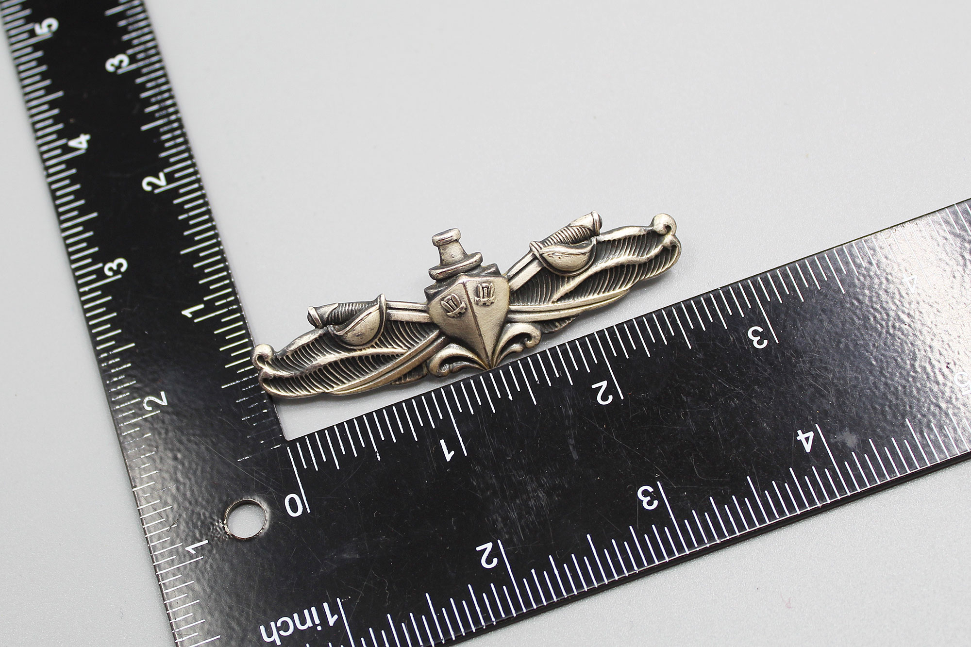 United States Navy Surface Warfare Badge. Clutch back. Size approximately 2 3/4 inches across. Worn condition.