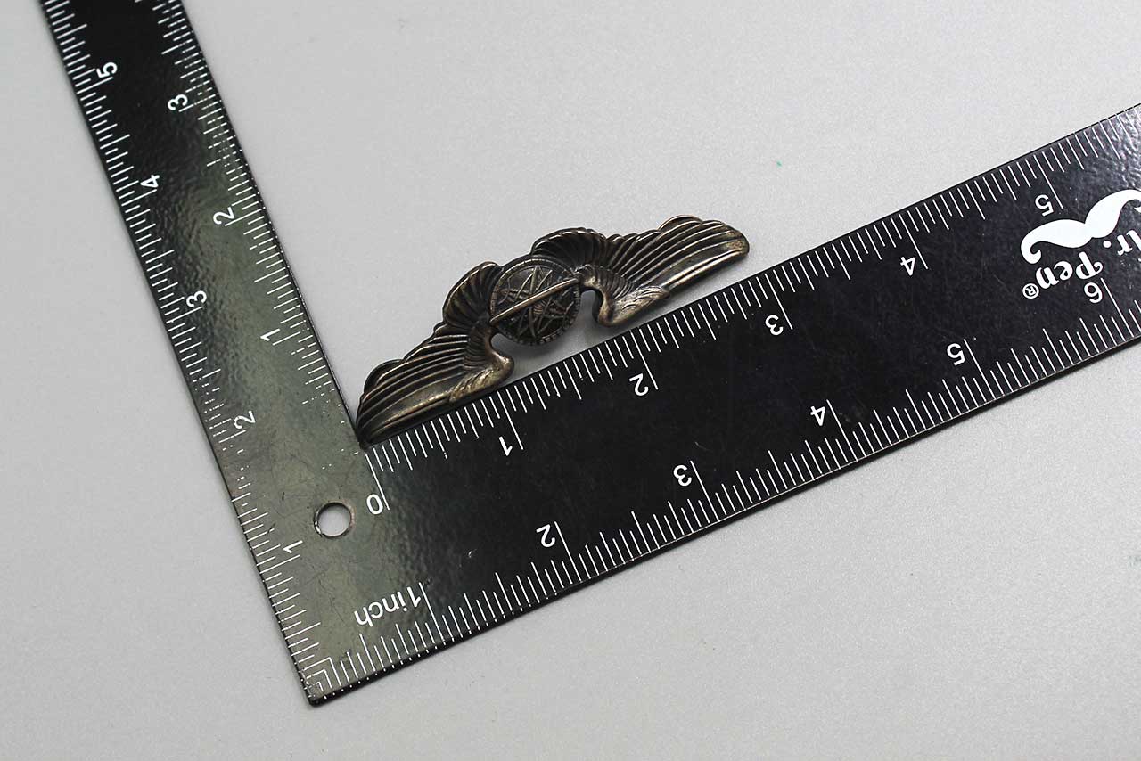 ADDITIONAL NOTES: U.S. Wings are most often found in 3 basic sizes. The 3-inch length wings are typically worn on Uniforms, Tunics, and Jackets and usually referenced as full-sized wings. The 2-inch wings were typically worn on shirts and the 1-inch wings were used on garrison or side caps. Also, the smaller sized wings were sometimes used by GIs as gifts to girlfriends or wives as sweetheart type items.