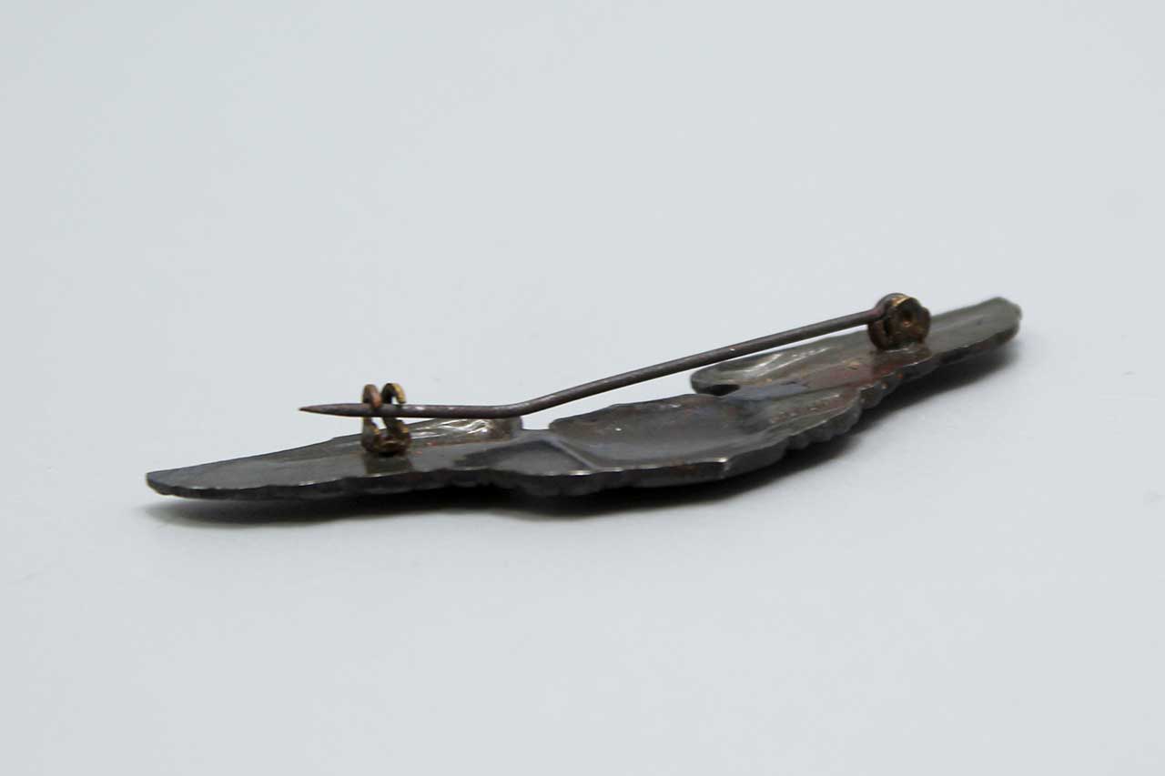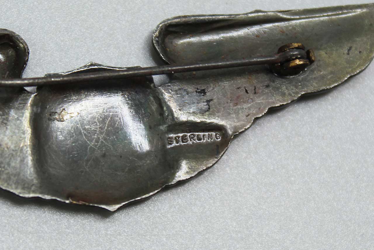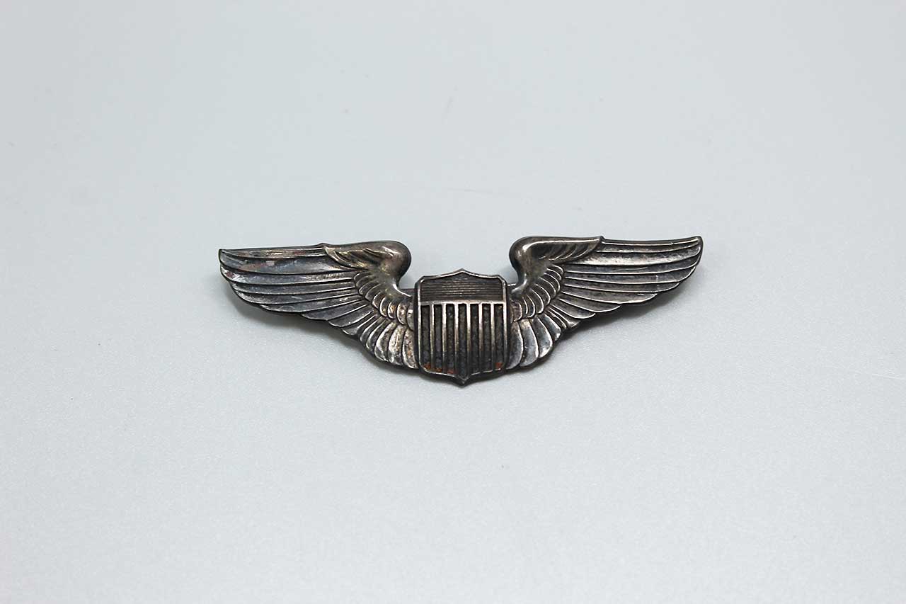 United States WW2 Army Air Force (AAF) Pilot Wings. Marked on back Sterling. Pin back. Size approximately 3 inches across (full sized wings). Worn condition.