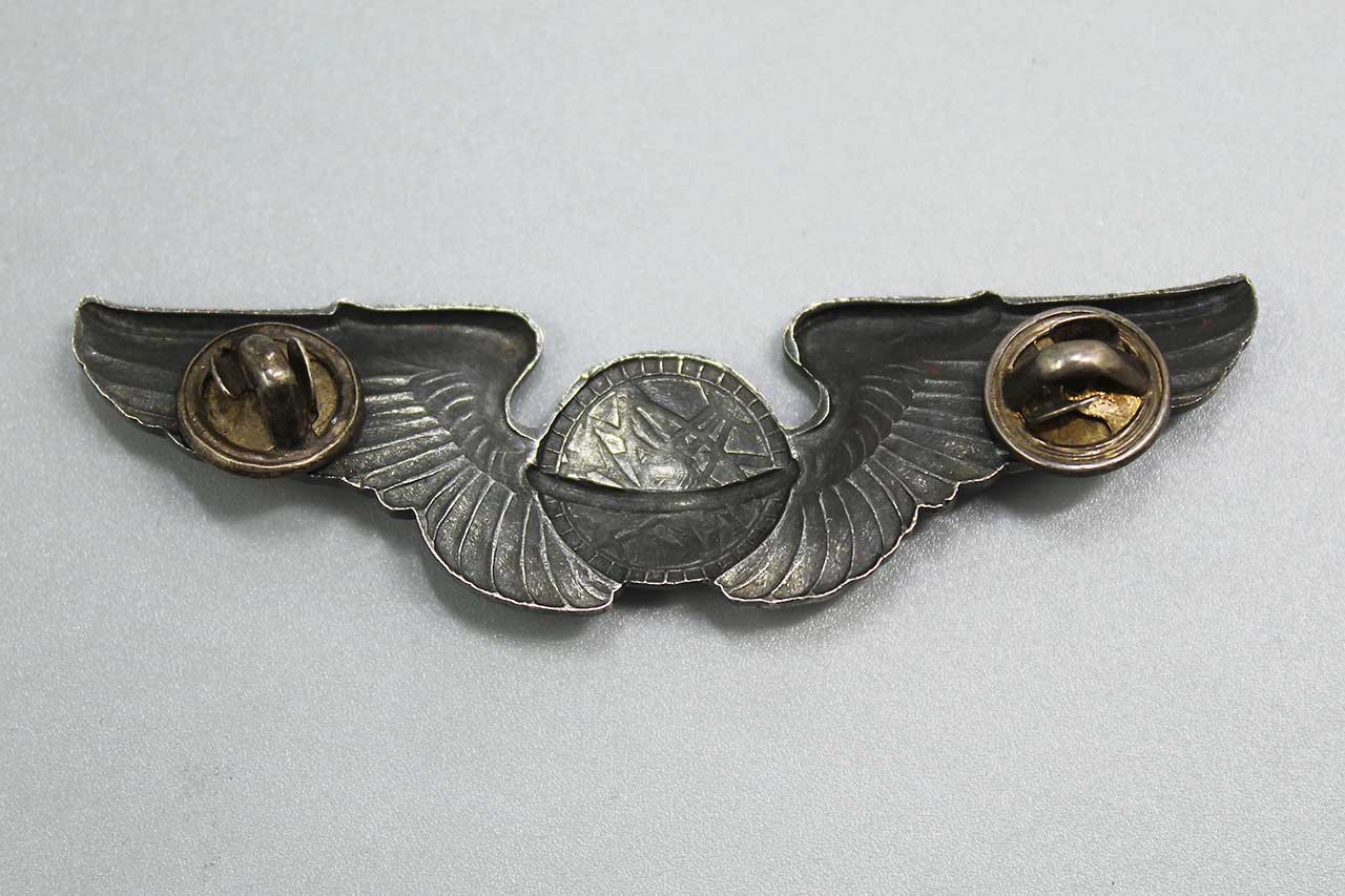 United States Army Air Force (USAAF) Navigator Wings. Clutch back with smooth face silver clutches. Full-size 3 inch wings. Most likely 1940s-1950s era. Worn condition.