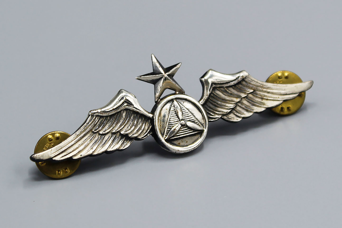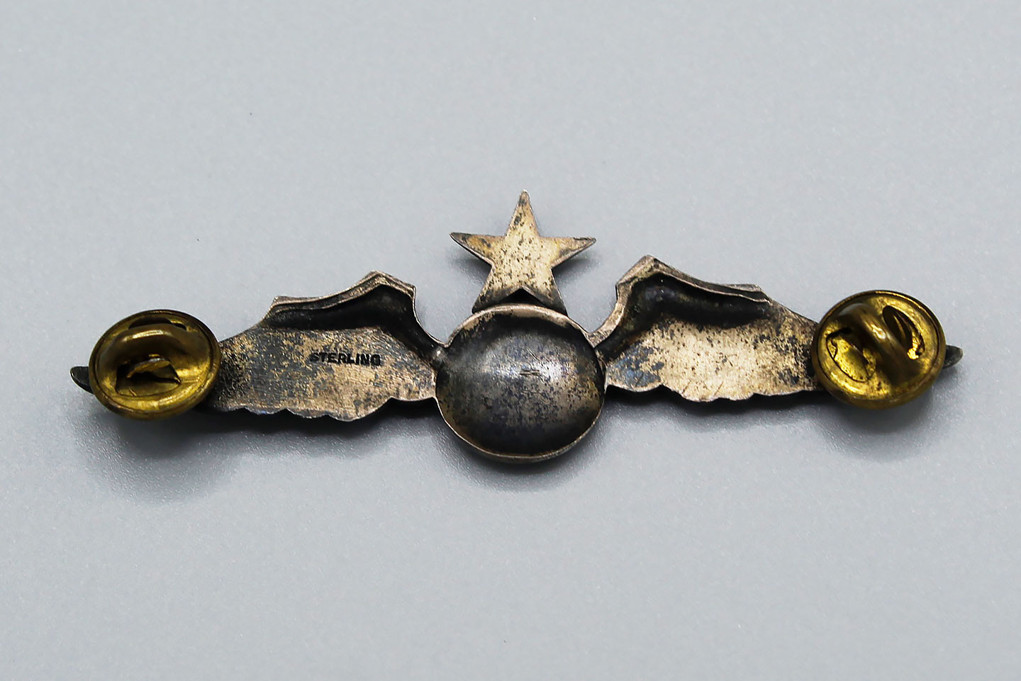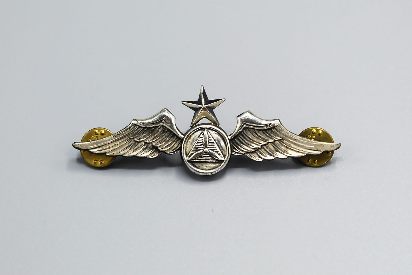 U.S. Civil Defense Senior Pilot Wings. Marked Sterling on back. 1940s-1950s era. Size approximately 3 1/8 inches (full sized) wings. Clutch back.