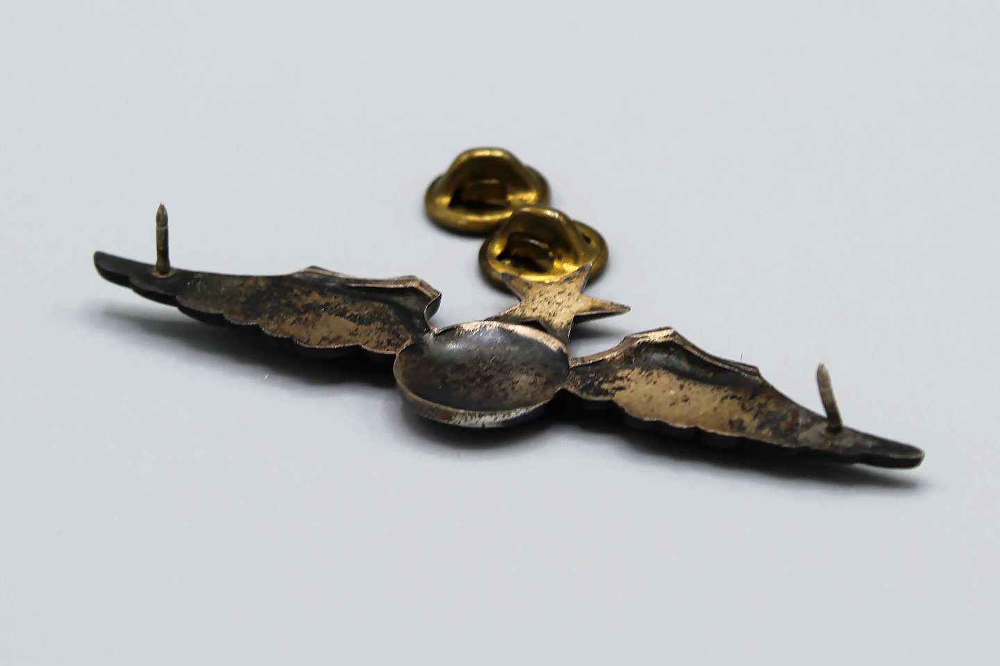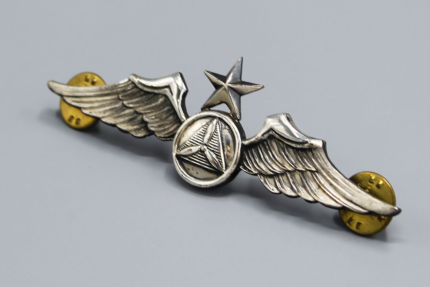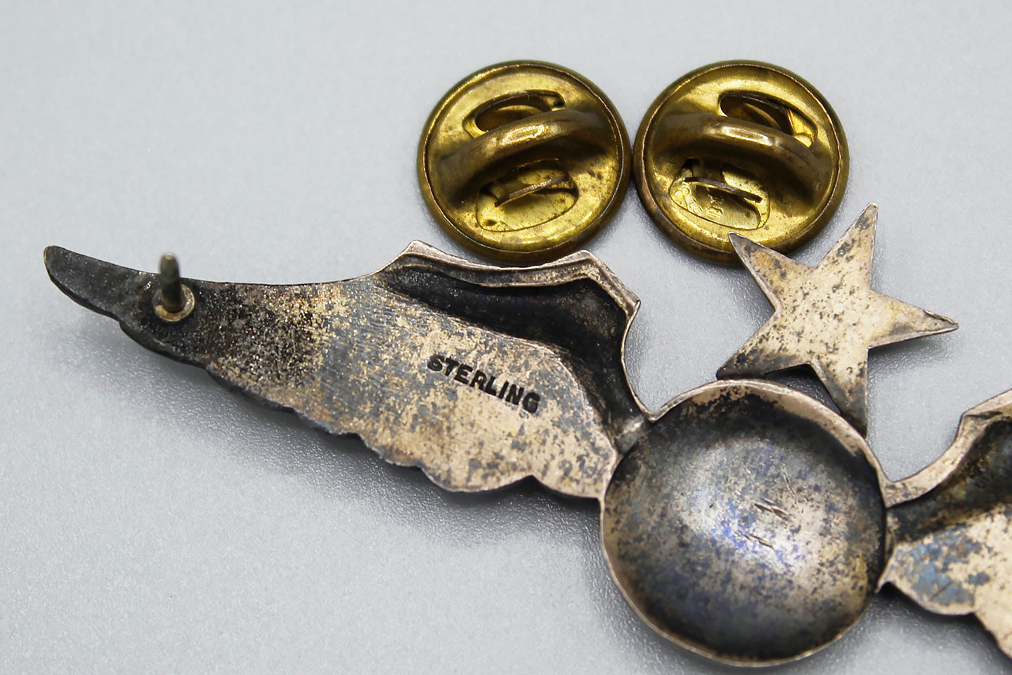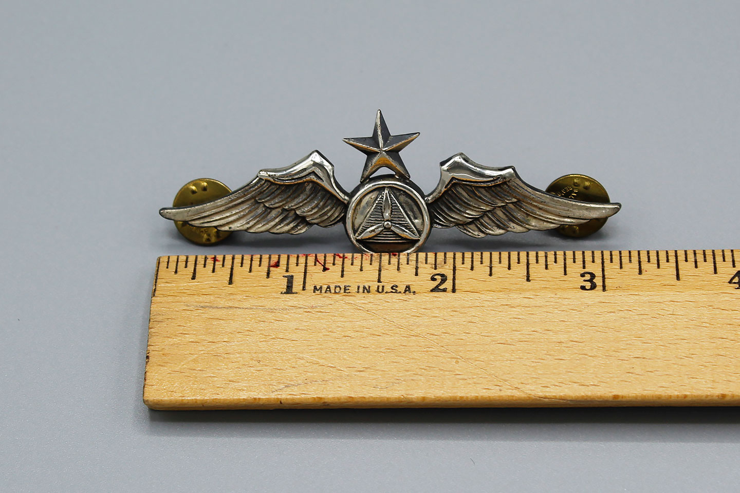 U.S. Civil Defense Senior Pilot Wings. Marked Sterling on back. 1940s-1950s era. Size approximately 3 1/8 inches (full sized) wings. Clutch back.