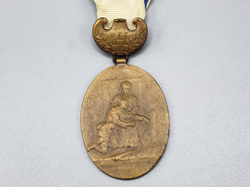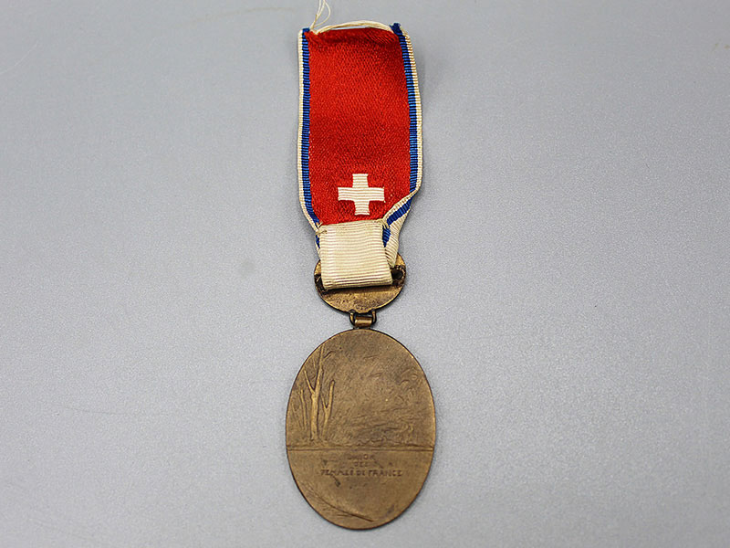 Pre-WW1 French Red Cross Union des Femmes de France special commemorative Infirmary Medal (UFF) with early Red Cross Ribbon.