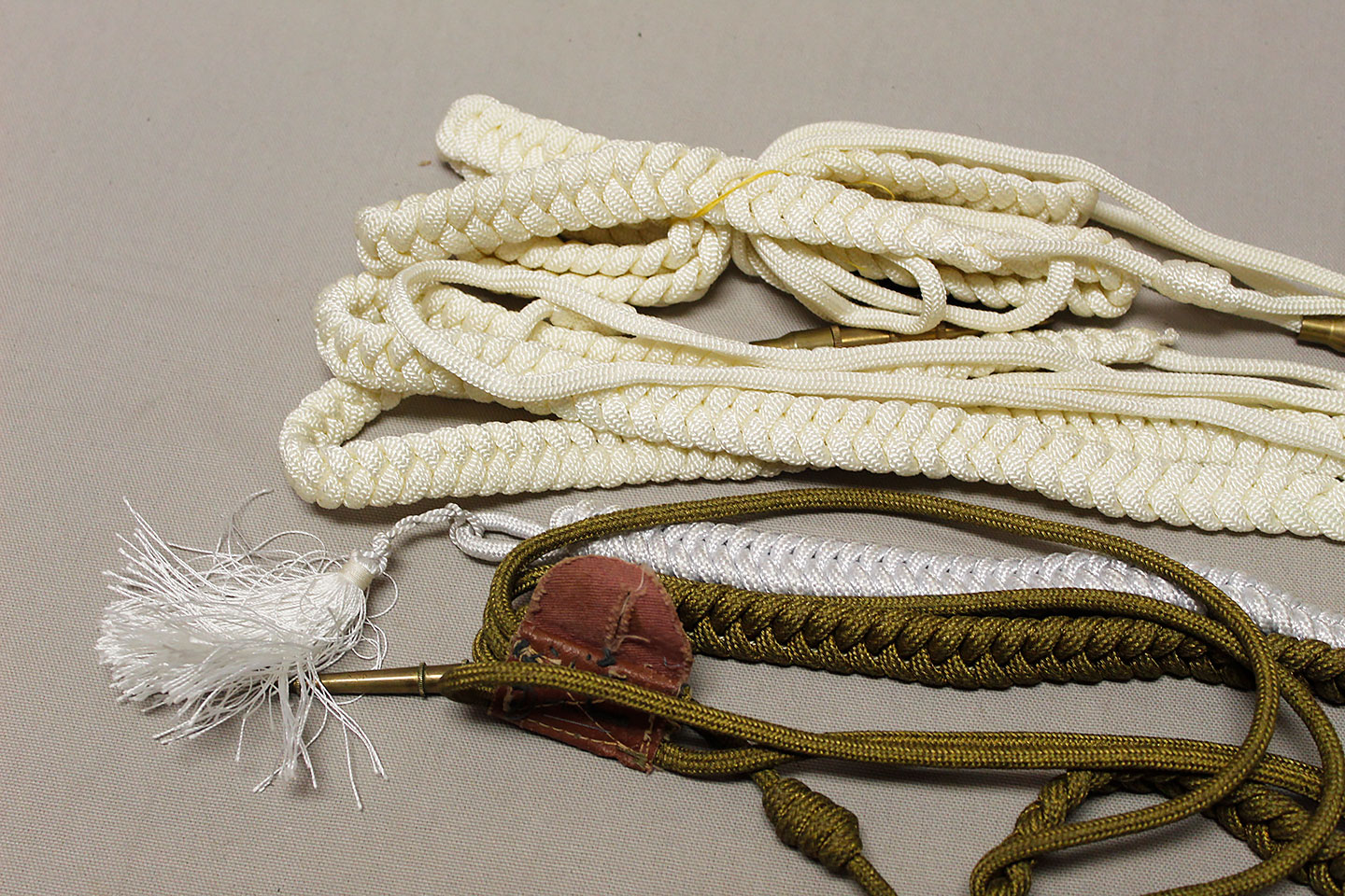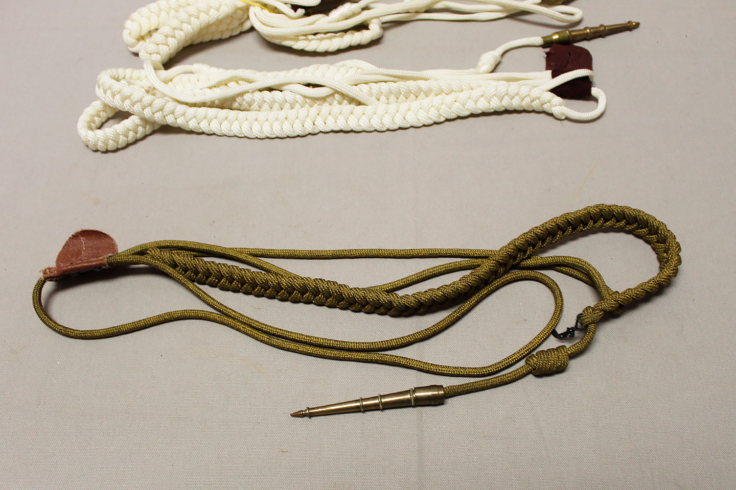 Miscellaneous Group of Aiguillettes and/or Fourragere Cords. Multiple cords with cord parts. Mixture of cords, parts, from different countries and eras. Price is for entire group pictured. Project parts.