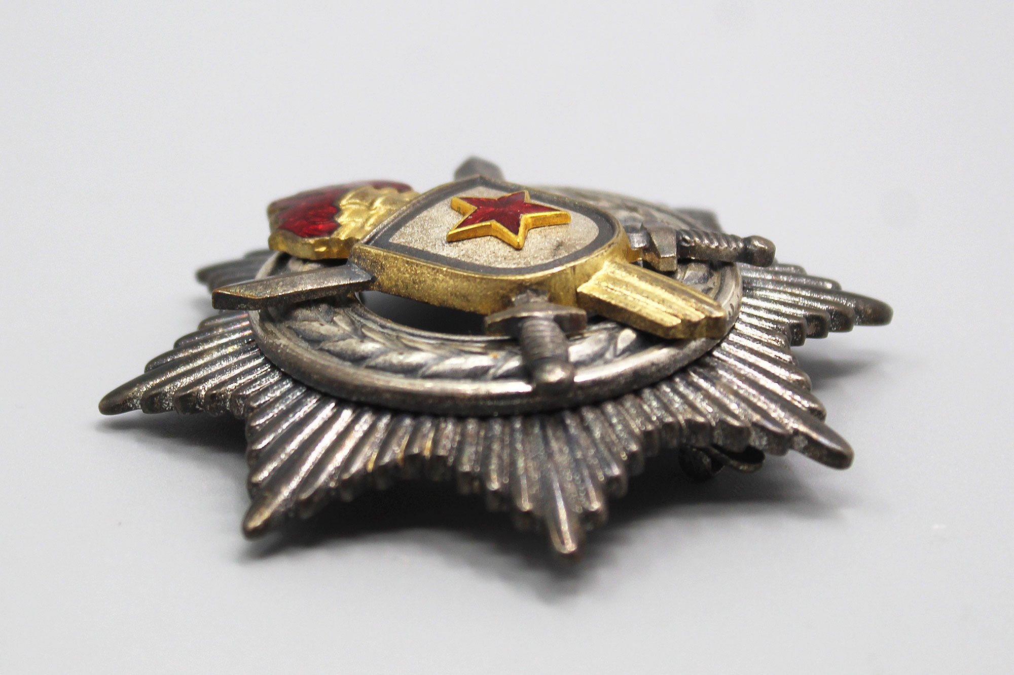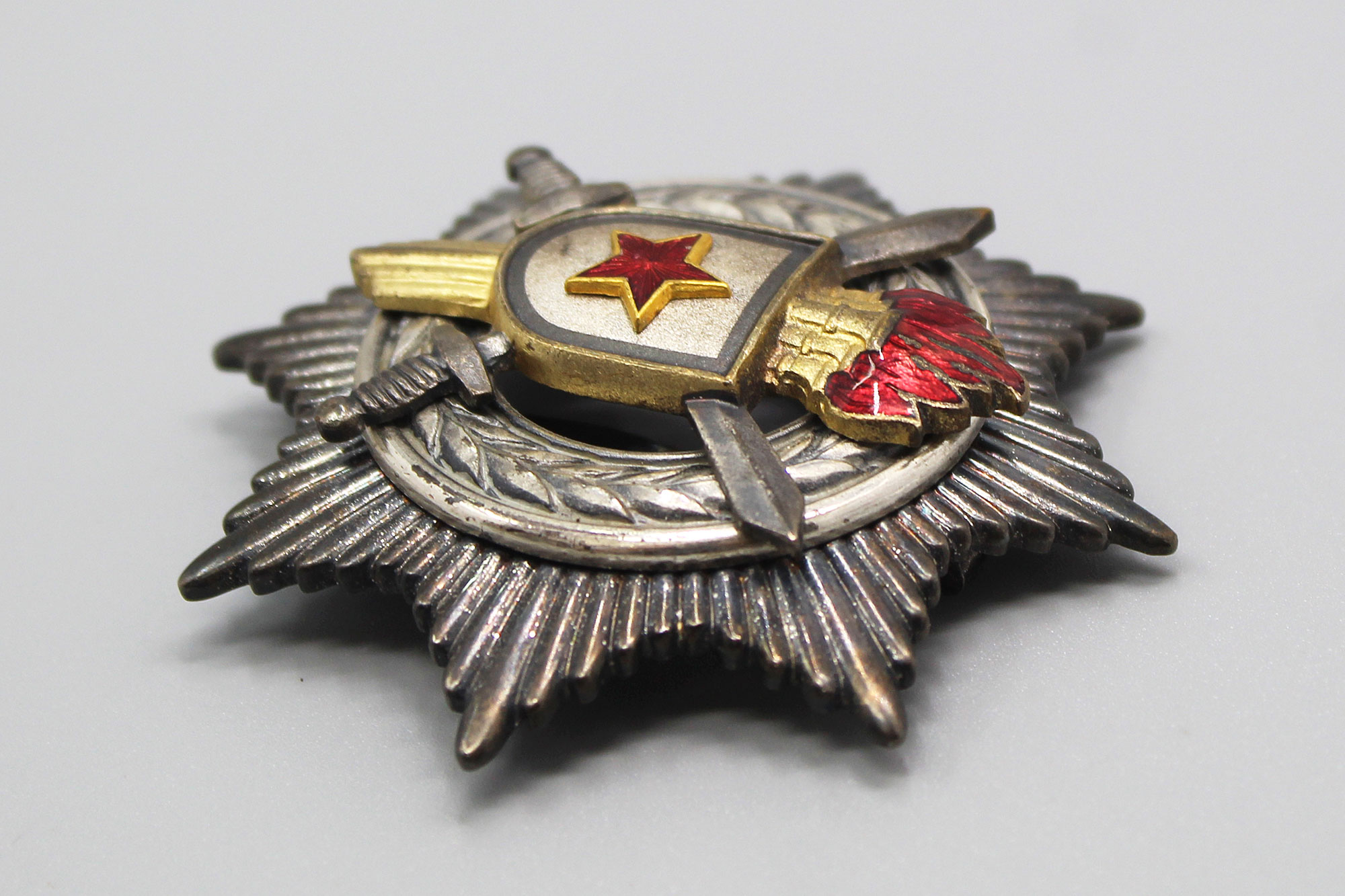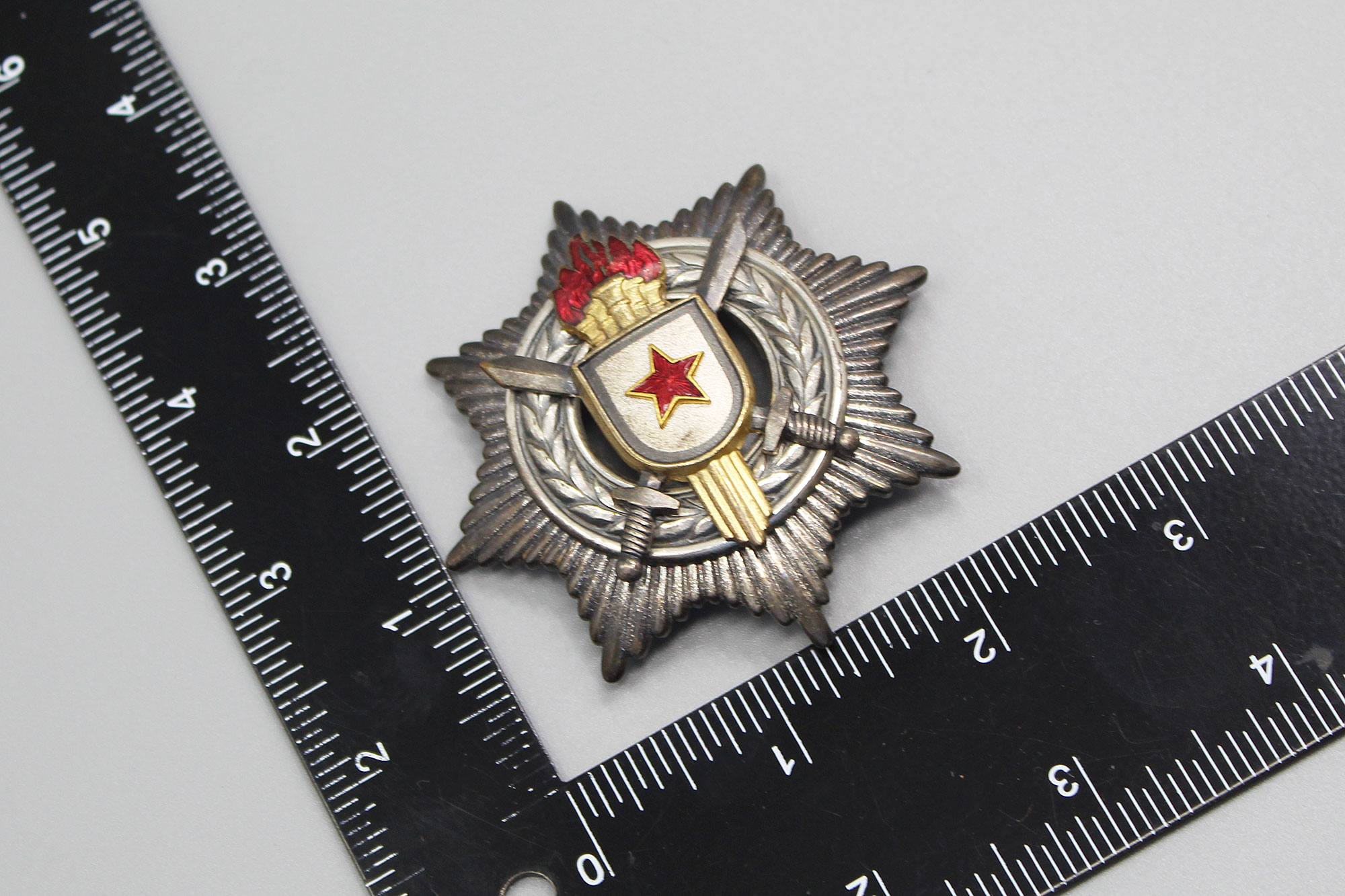 Additional Notes: The Yugoslavian Order of Military Merit was a state decoration awarded in Yugoslavia, divided into three classes. It was awarded to commanders of units and civilians serving in the Yugoslav People’s Army, as well as individuals in trade unions or other organizations with outstanding contributions and accomplishment of tasks of special immediate importance for national defense.