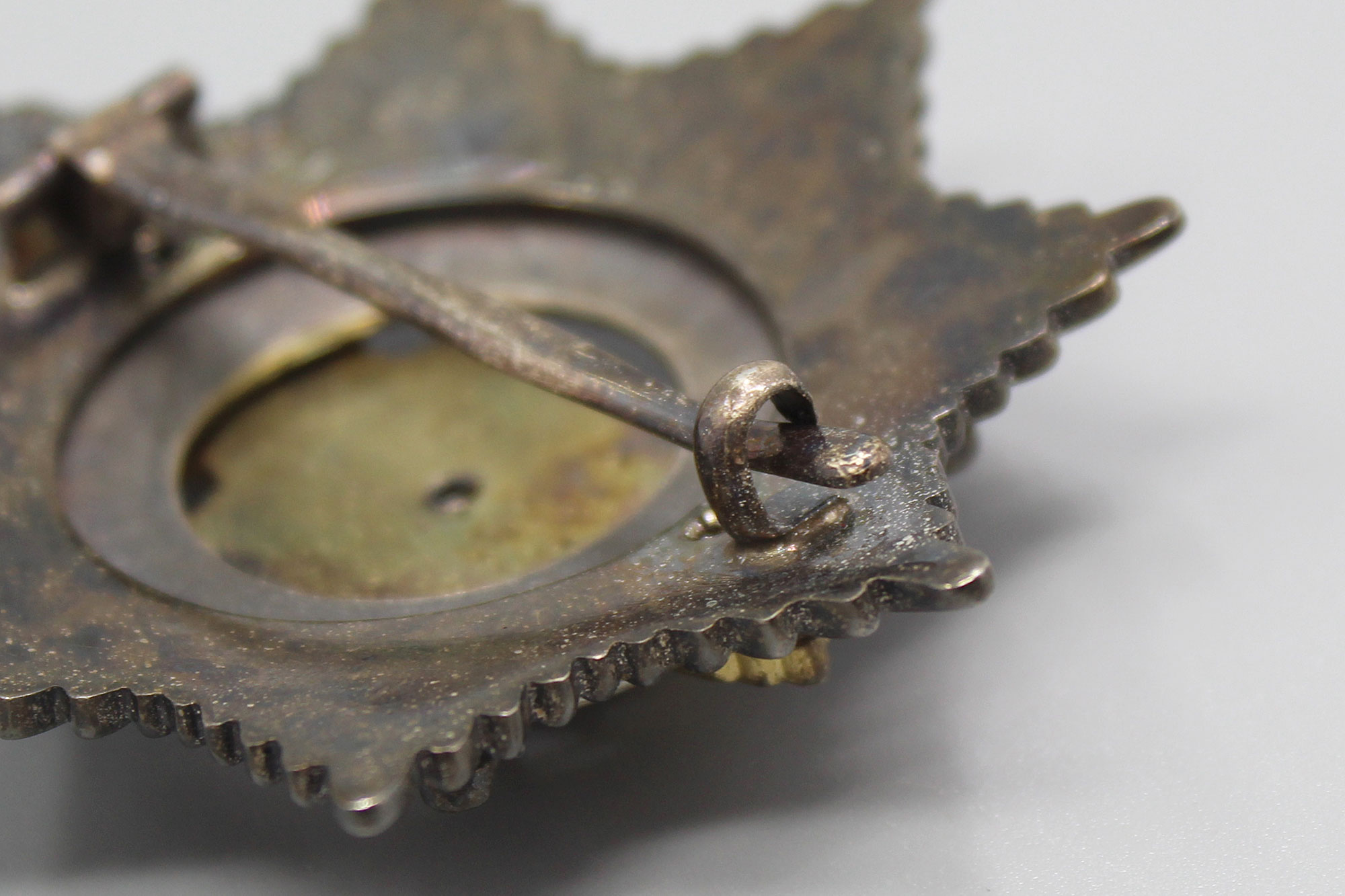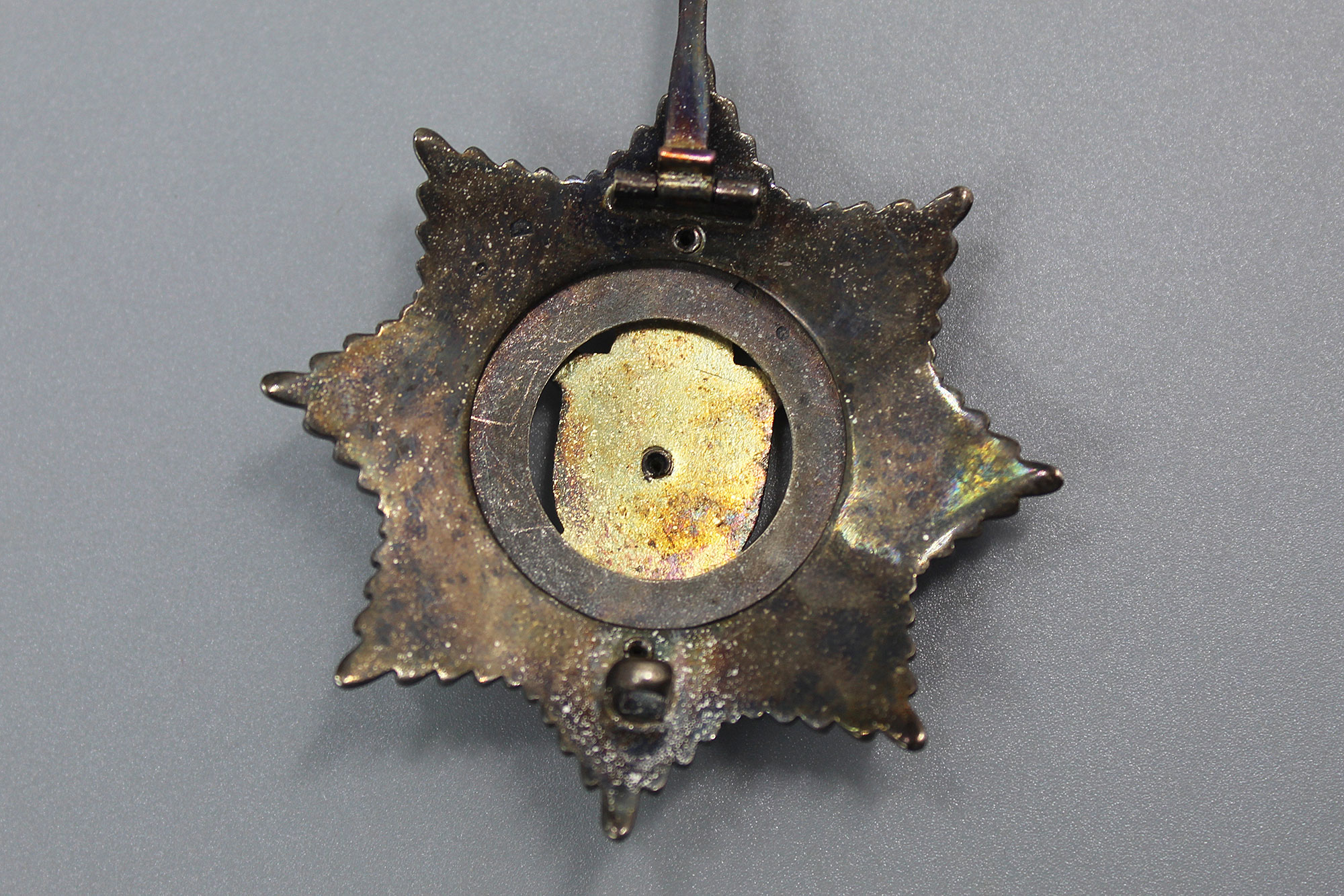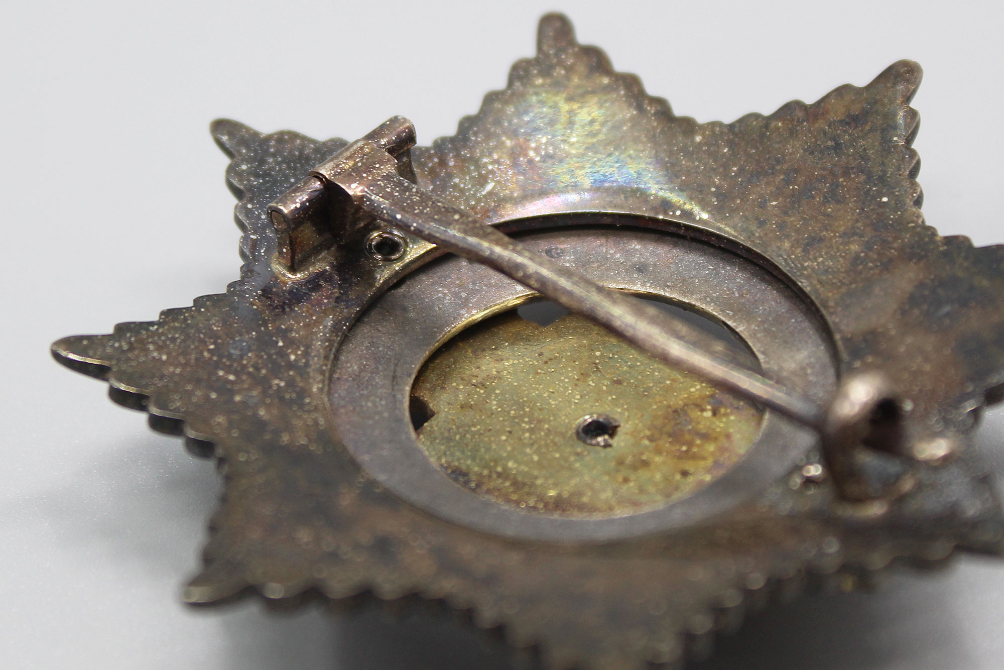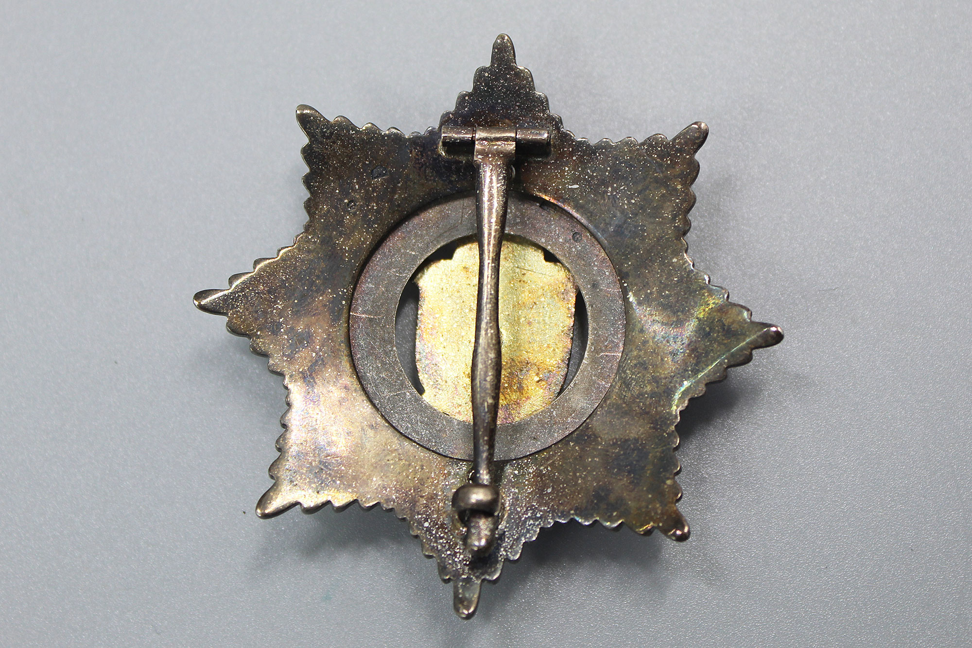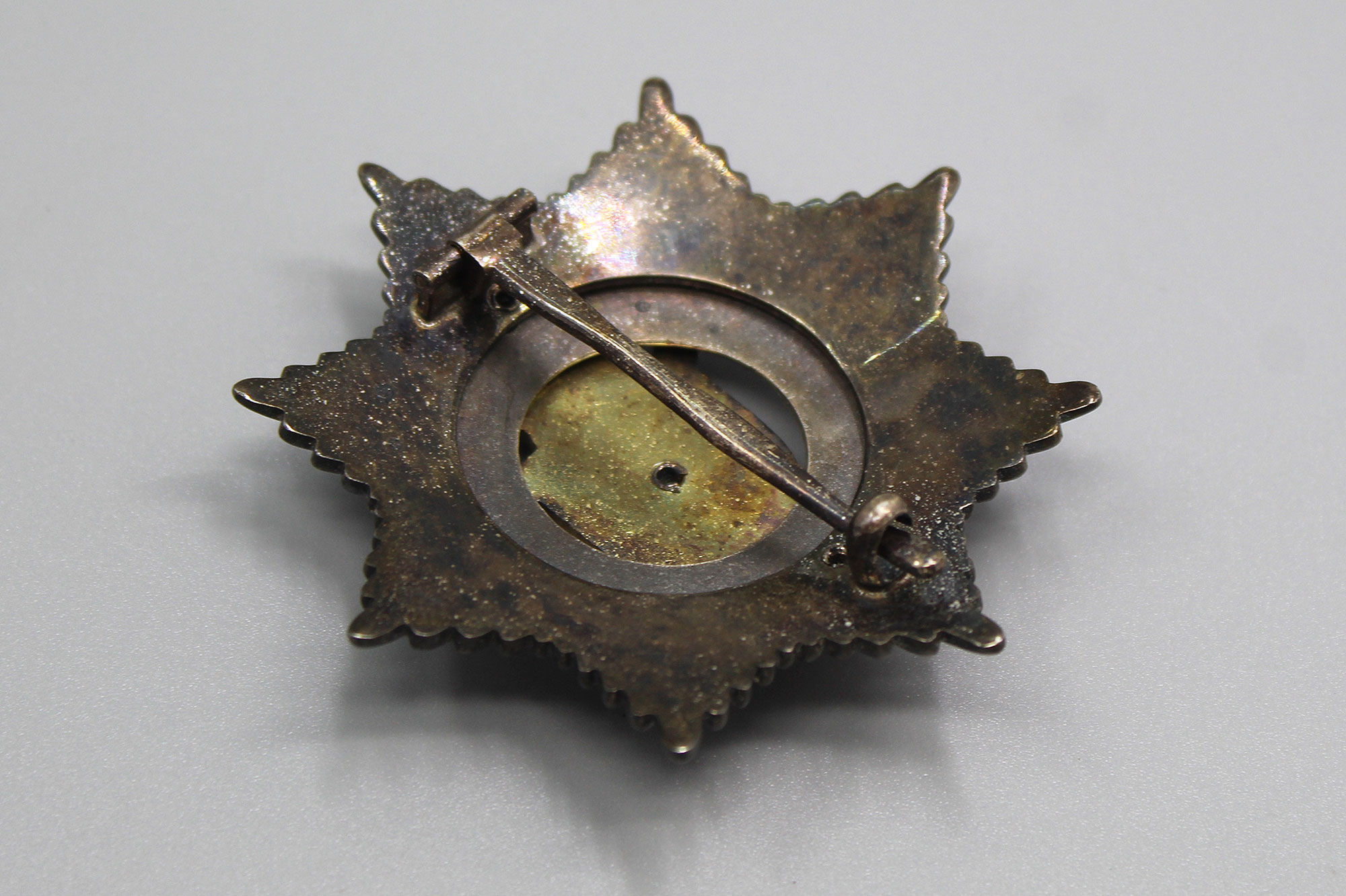 Yugoslavian Order of Military Merit and Bravery with Silver Swords. Third Class (Class III). Pin back with single central hollow rivet. Most likely 1950s-1970s era. Worn condition.