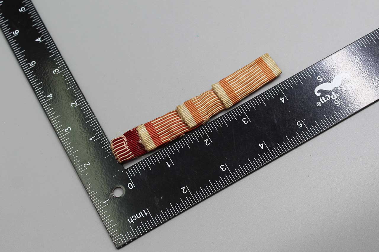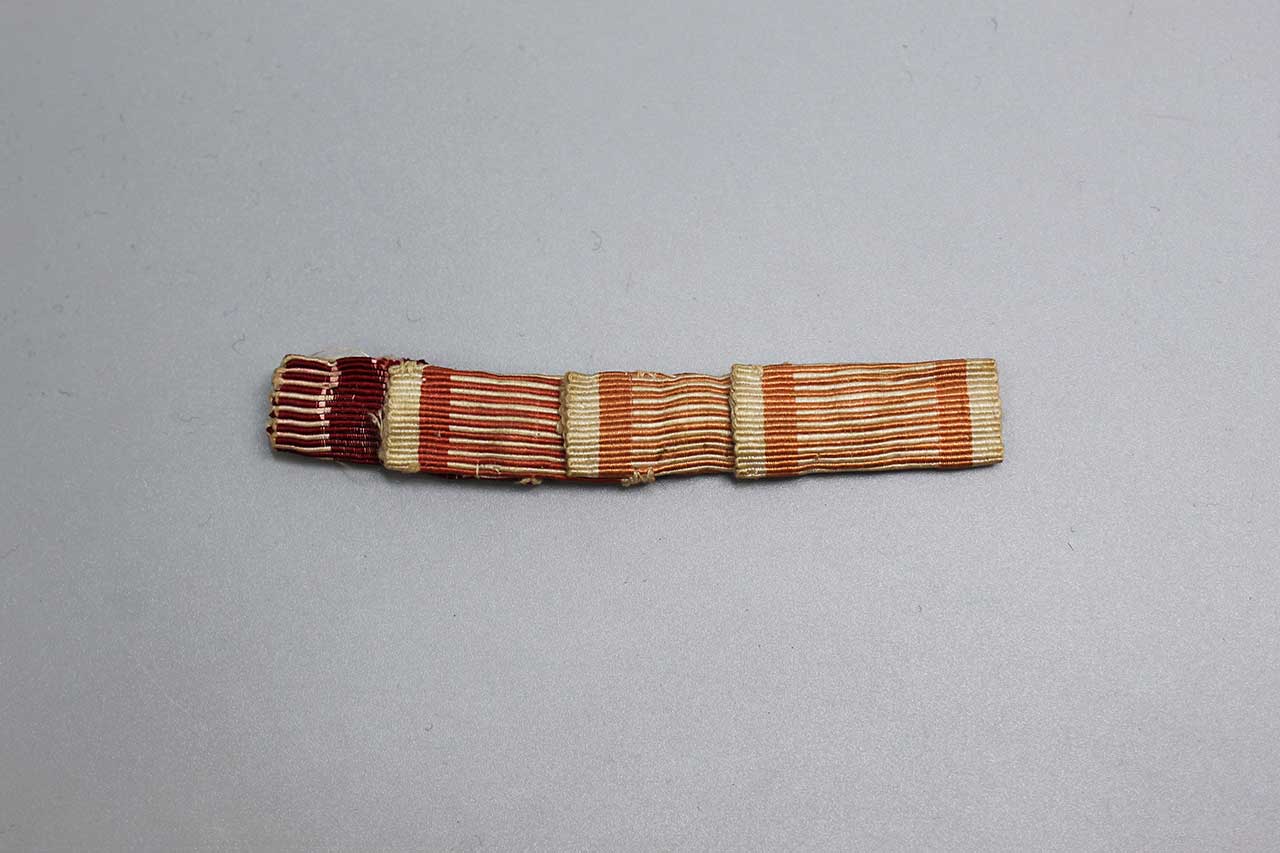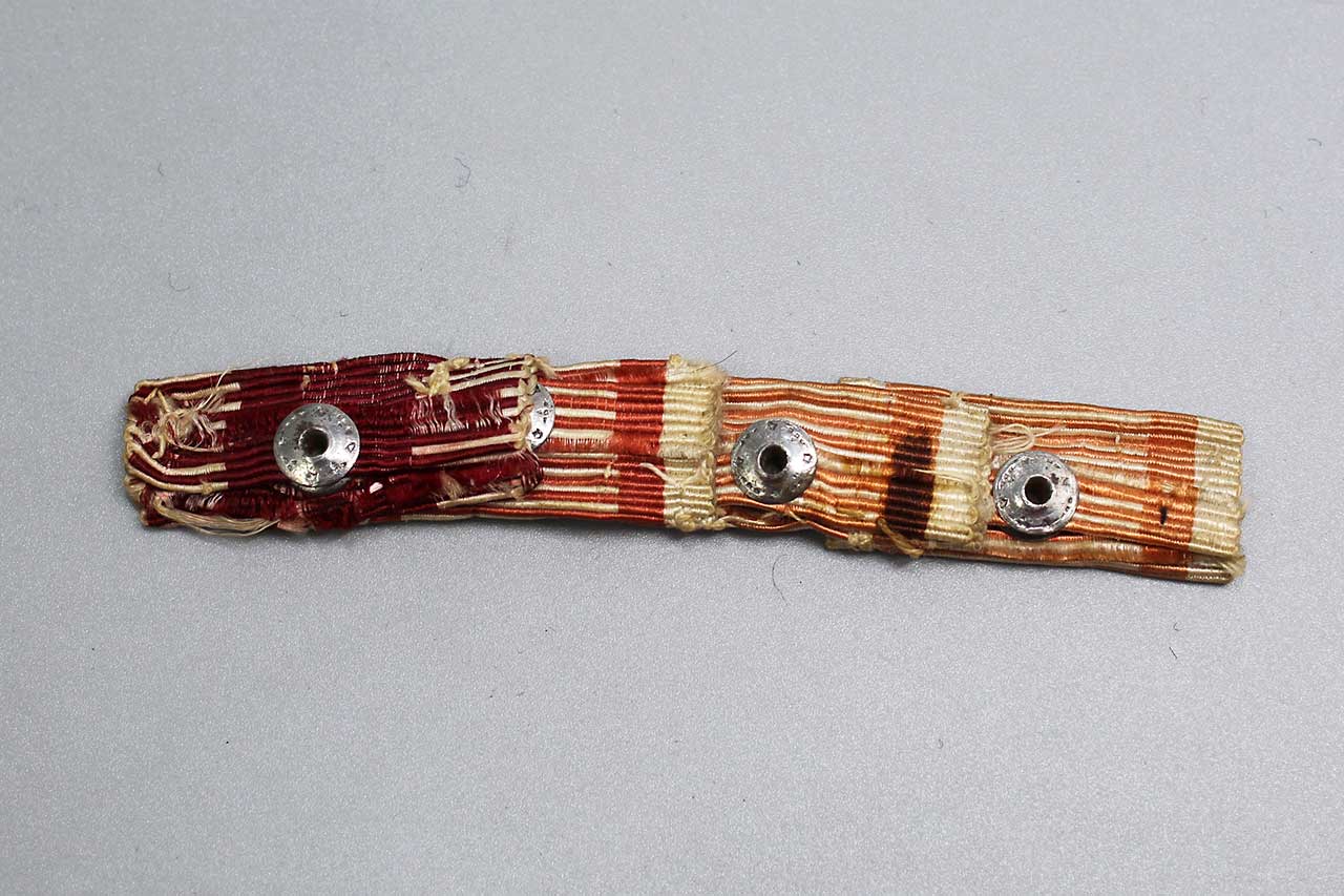 WW1 Austria Hungary Ribbon Bar. Snap-on type attachment. Ribbon bar for Austrian Iron cross of merit or bravery medals. Size approximately 4 1/4 inches across. Very heavily worn condition.