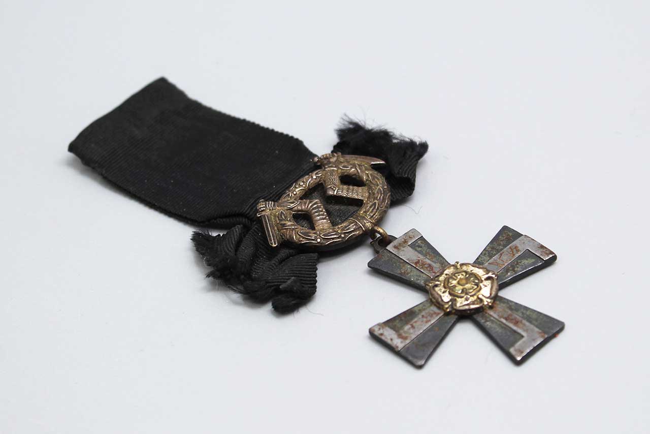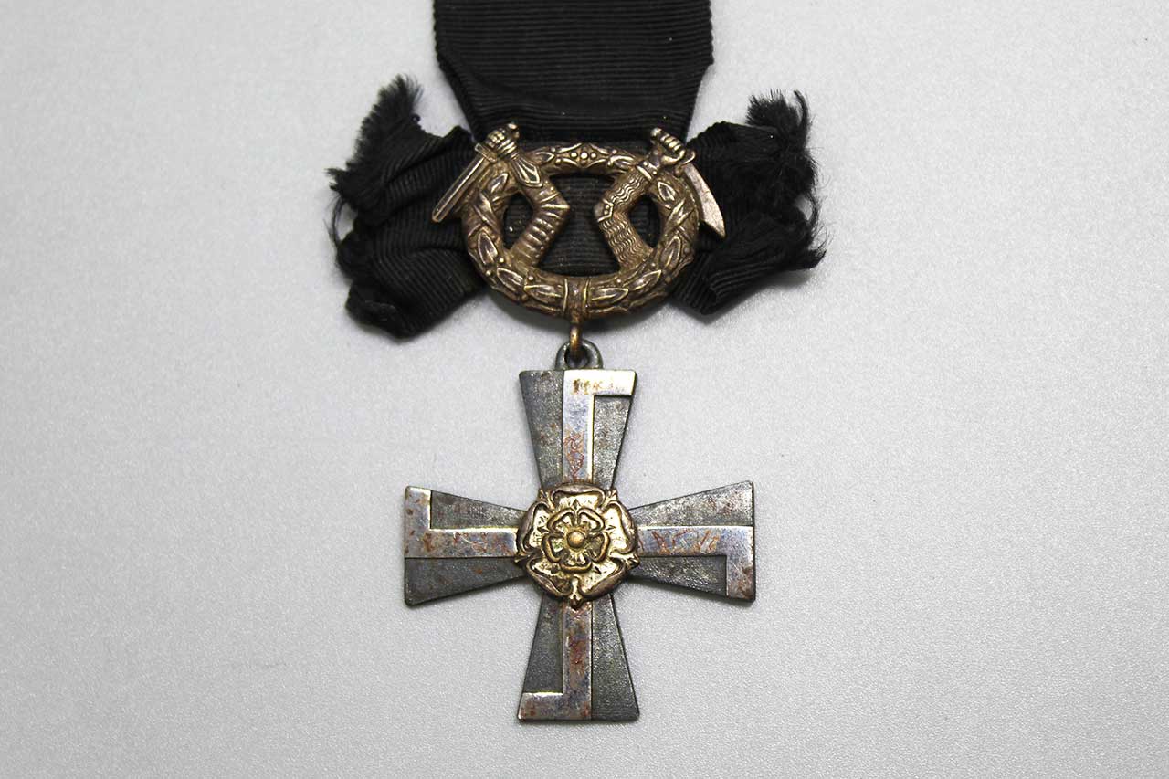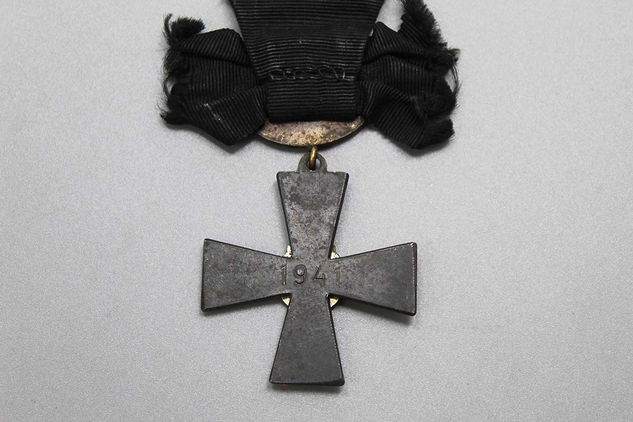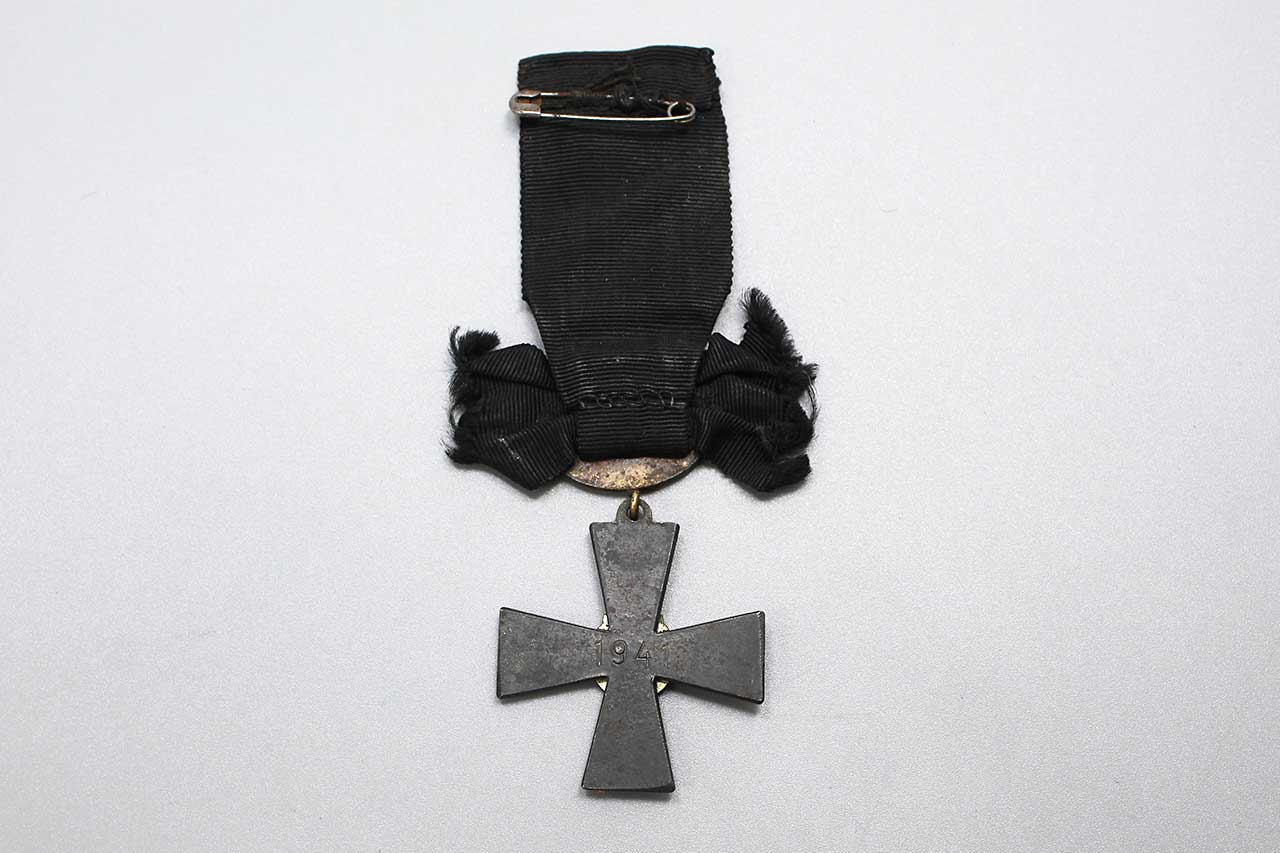 1941 Finland Cross of Mourning for the Order of the Cross of Liberty 4th class with swords. Cross of Mourning can be awarded to the next of kin of a fallen member of the Finnish Defense Forces. Worn condition.