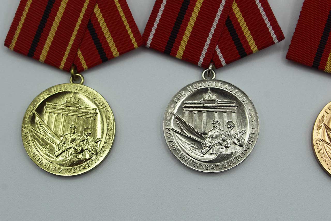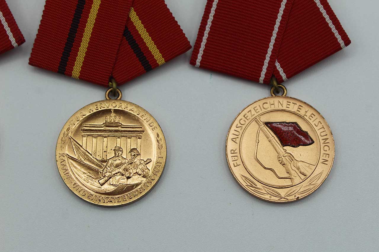 Additional Notes: Following the 1949 establishment of the German Democratic Republic (GDR) the new state prohibited the wearing of all pre-1945 German decorations and created a new system of awards inspired in part by those of the USSR. East Germany, officially the German Democratic Republic (GDR), was a country in Central Europe that existed from its creation in October of 1949 until its dissolution in October of 1990. Until 1989, it was generally viewed as a communist state, and it described itself as a socialist “workers’ and peasants’ state”. Before its establishment, the country’s territory was administered and occupied by Soviet forces with the autonomy of the native communists following the Berlin Declaration abolishing German sovereignty in WW2; when the Potsdam Agreement established the Soviet-occupied zone, bounded on the east by the Oder–Neisse line. The GDR was dominated by the Socialist Unity Party of Germany (SED), a communist party from 1949 to 1989.