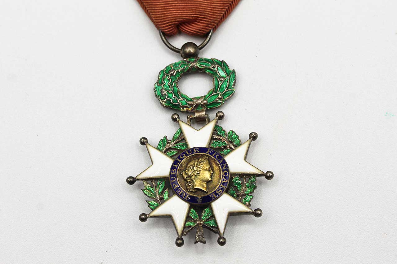 French Legion of Honor Medal. 5th Class Chevalier. 4th Republic version (1946-1958). Worn condition.