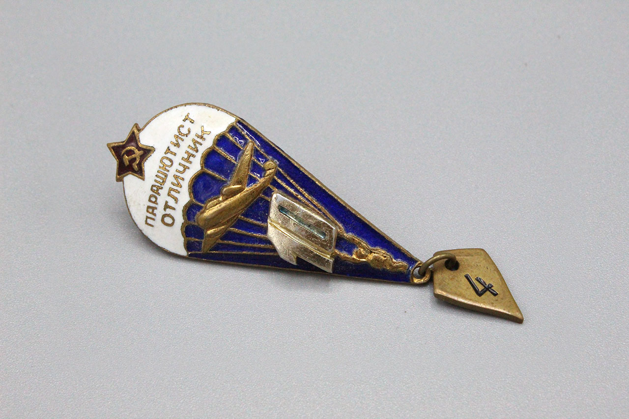 Soviet Paratrooper Badge. Screw-post attachment system on back. Worn condition.