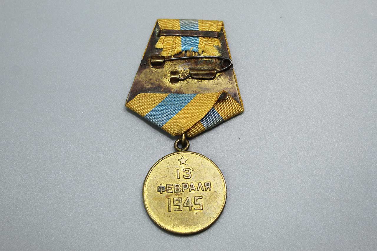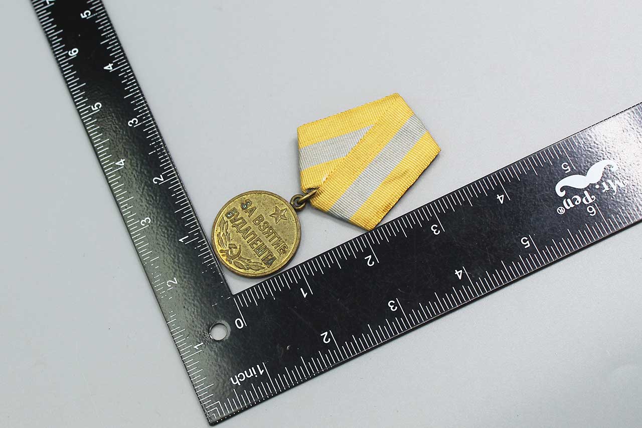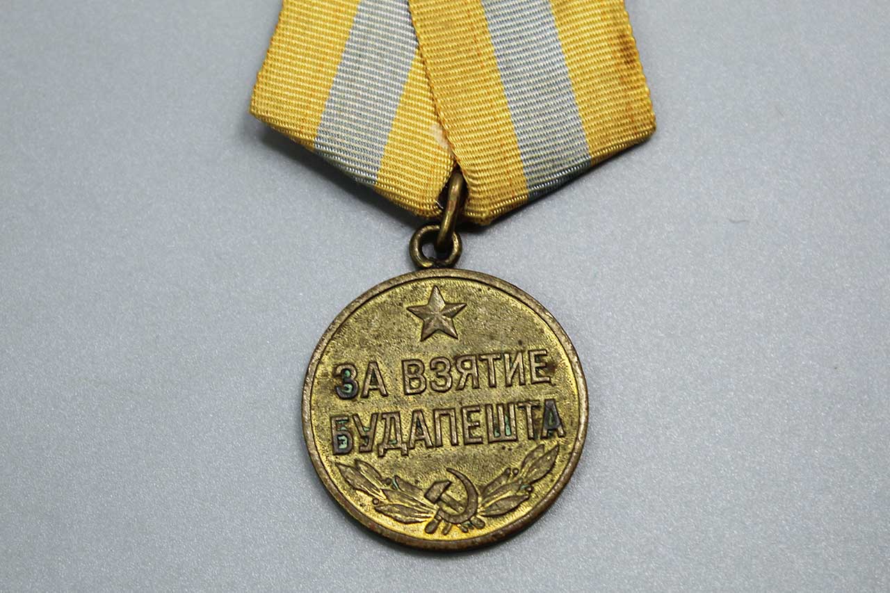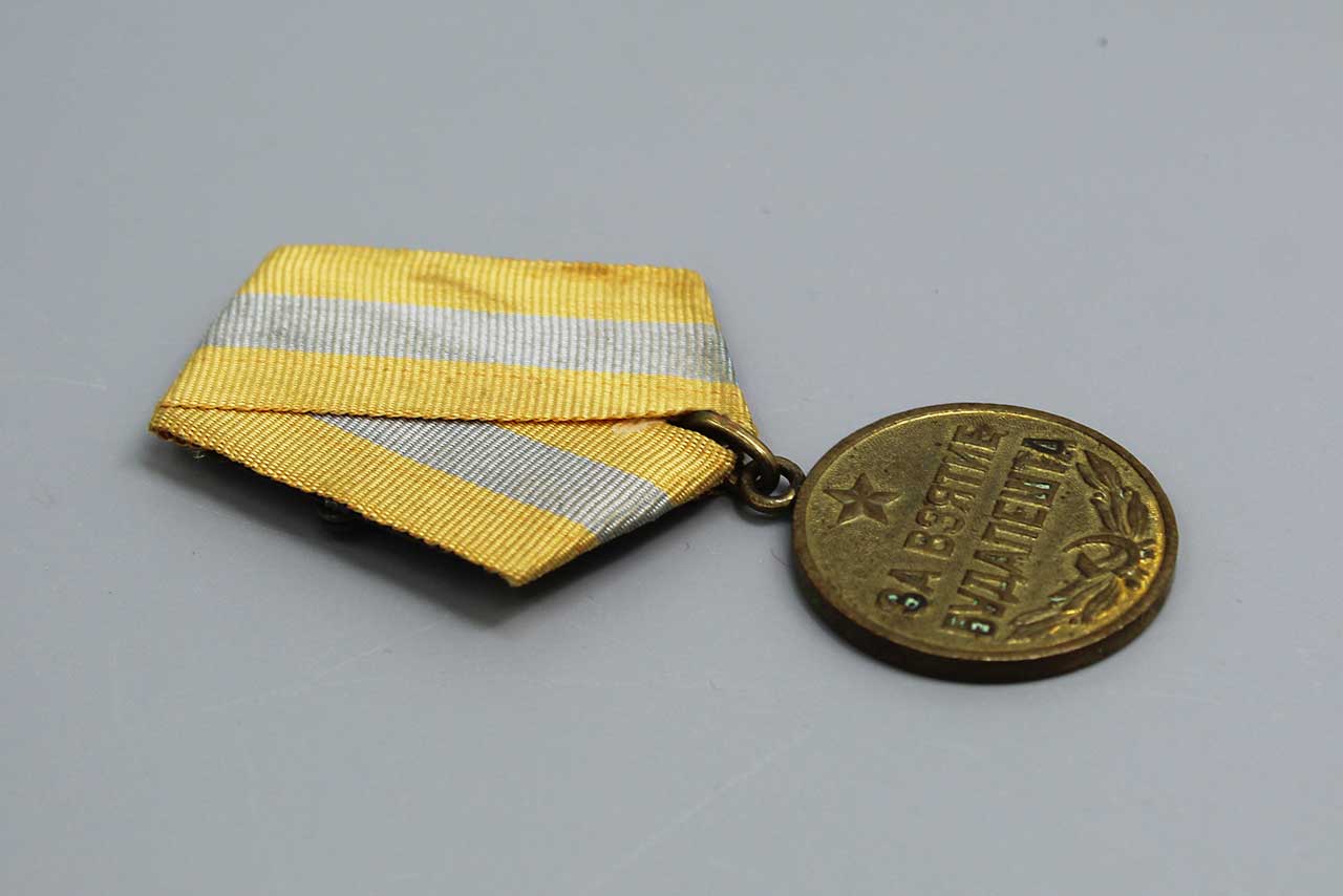 Additional Notes: The Medal for the Capture of Budapest was established in June of 1945 and awarded to Soviet service personnel who took part in the capture of Budapest from the armed forces of WW2 Germany between December of 1944 and February of 1945. The medal was awarded to soldiers of the Red Army, Navy, and troops of the NKVD, direct participants of the heroic assault and capture of Budapest as well as to the organizers and leaders of combat operations in the capture of this city. Serving military personnel received the medal from their unit commander, retirees from military service received the medal from a regional, municipal, or district military commissioner in the recipient’s community.