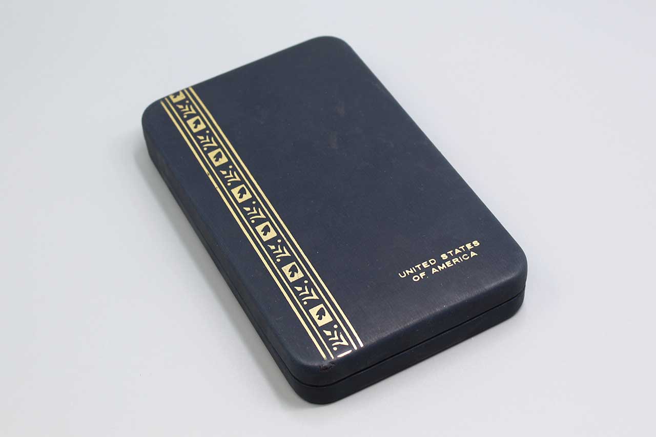 Additional Notes: For American medal cases, the U.S. “coffin” style cases were ww2 produced. However, the “coffin” style cases/boxes were used right up to and through the Vietnam conflict as supplies of the medal boxes were used up (so you can find WW2, Korea, and Vietnam era medals in this style of case). Next, clear plastic cases/boxes were used in the 1950’s and 60’s (typically you see Vietnam era medals in these cases). The clear plastic cases were followed up by the blue vinyl-type grained textured cases/boxes with the metal rims which were utilized in the 1970’s follow up by blue vinyl-type smooth covered cases with metal rims. After that, there were blue vinyl-type smooth covered cases without metal rims. Finally small hard shell plastic blue cases were introduced.