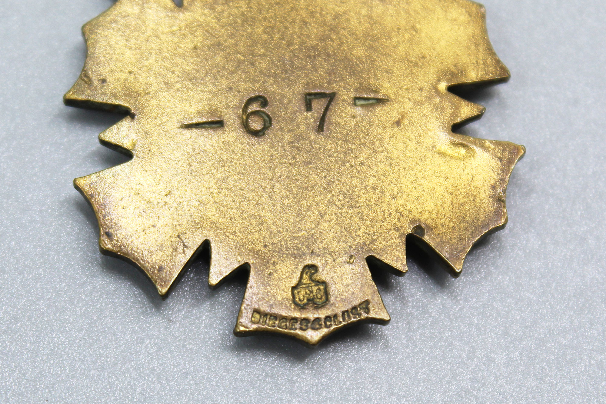 United States New York National Guard (NYNG) Medal. Wording in center is Paratus Et Fidelis 100%. Also, has F.A. 258 on top suspension bar. Numbered -67- on back of medal with marker logo below. I believe this is Spanish American War (1898-1902) era. Worn condition.