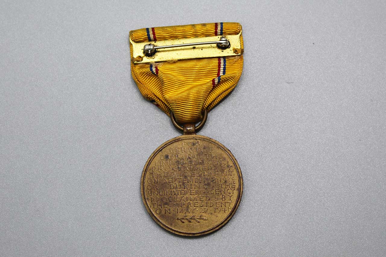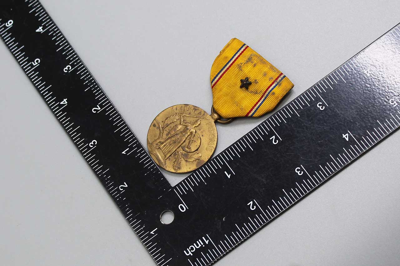 Additional Notes: The American Defense Service Medal is a military award of the U.S. Armed Forces, established in June of 1941. The medal was intended to recognize those military service members who had served on active duty between September of 1939 and December of 1941.