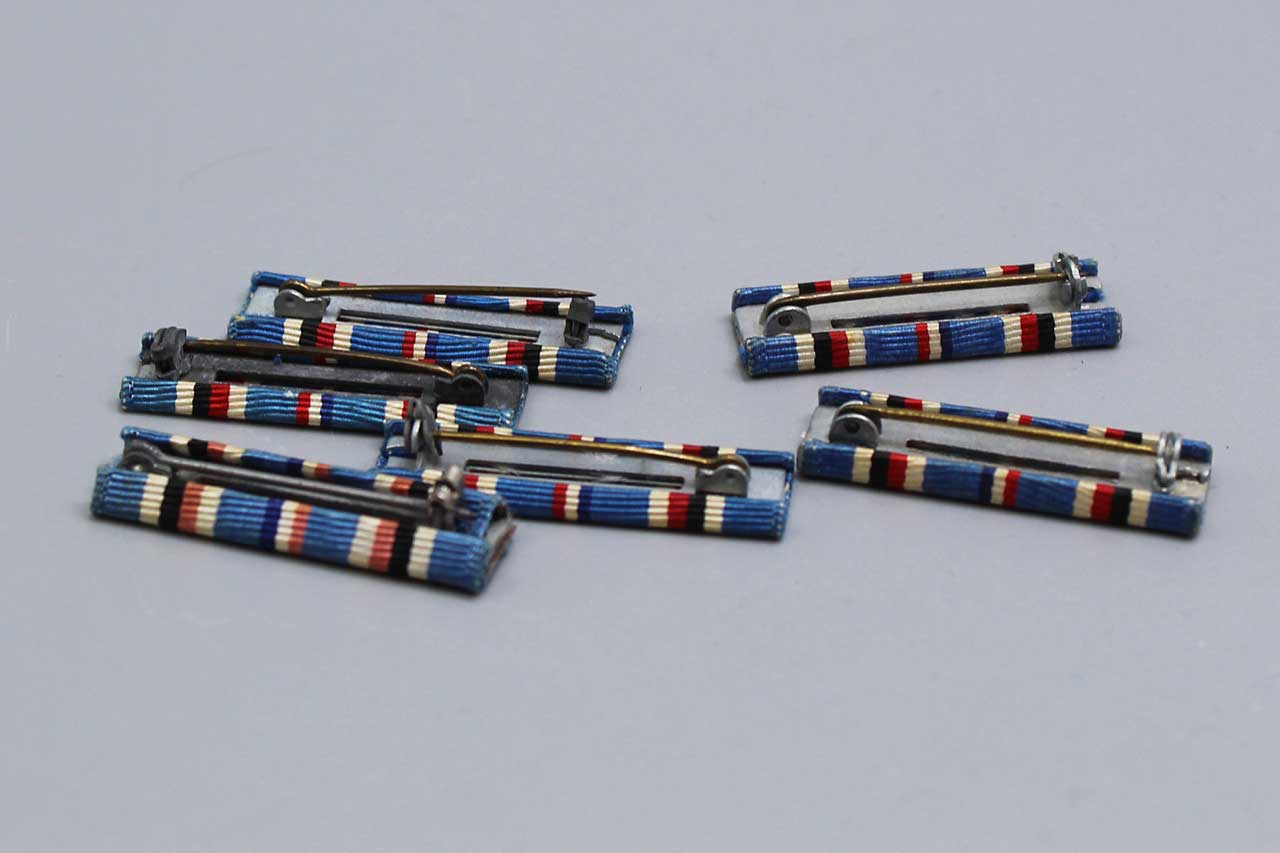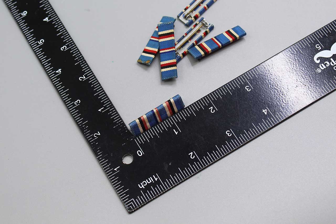 United States American Campaign Ribbon Bar. Price each. Pin back. I have several of these as pictured. You will get one of the ones pictured or similar condition to ones pictured. Most likely 1940s (ww2) era. Zinc backing. Worn condition with some staining. Price Each.