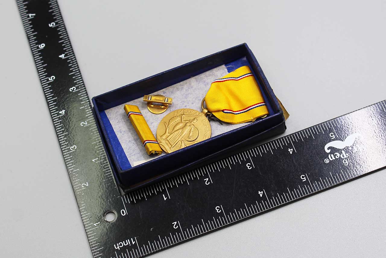 Additional Notes: The American Defense Service Medal is a military award of the U.S. Armed Forces, established in June of 1941. The medal was intended to recognize those military service members who had served on active duty between September of 1939 and December of 1941.