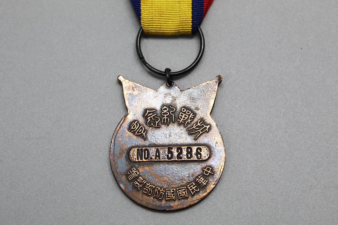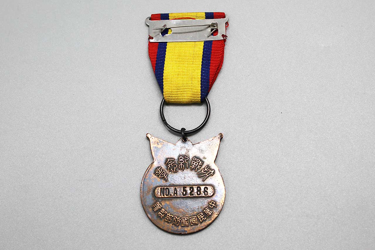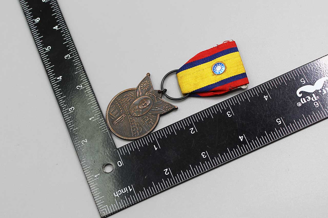 Additional Notes: The China War Memorial Medal, also known as the Medal in Commemoration of Victory in the Resistance Against Aggression (Chinese: 抗戰勝利勳章) was authorized after the Second Sino-Japanese War (WW2) by the Republic of China government for servicemen who assisted the Chinese Government fighting against the Japanese during the war. Members of the Fourteenth Air Force, the Flying Tigers, were eligible to be awarded this medal. The medal was created in 1944 and first distributed in 1946 to those who met the requirements from the Chinese Nationalist Government. Lt. General Claire Lee Chennault and Anna Chennault were a few who had received this medal.