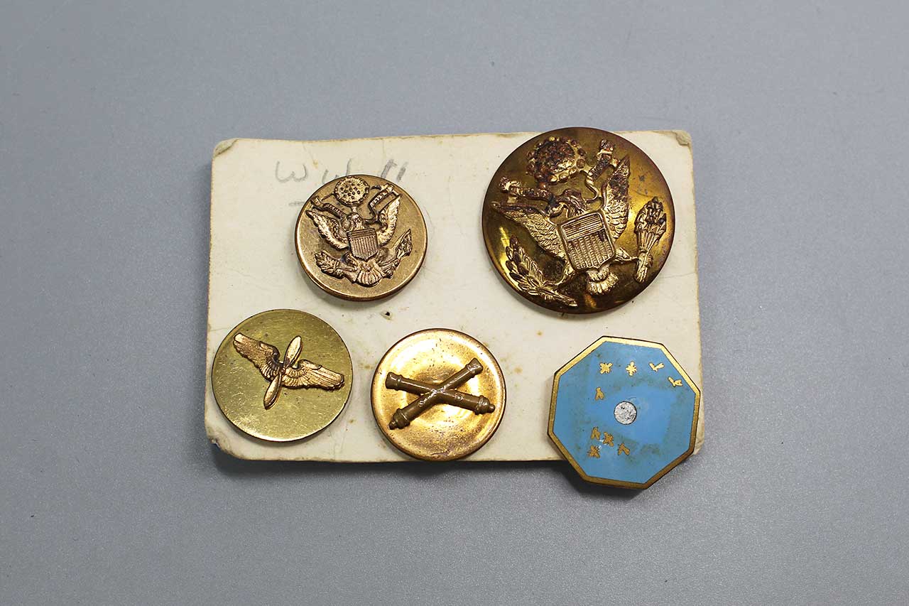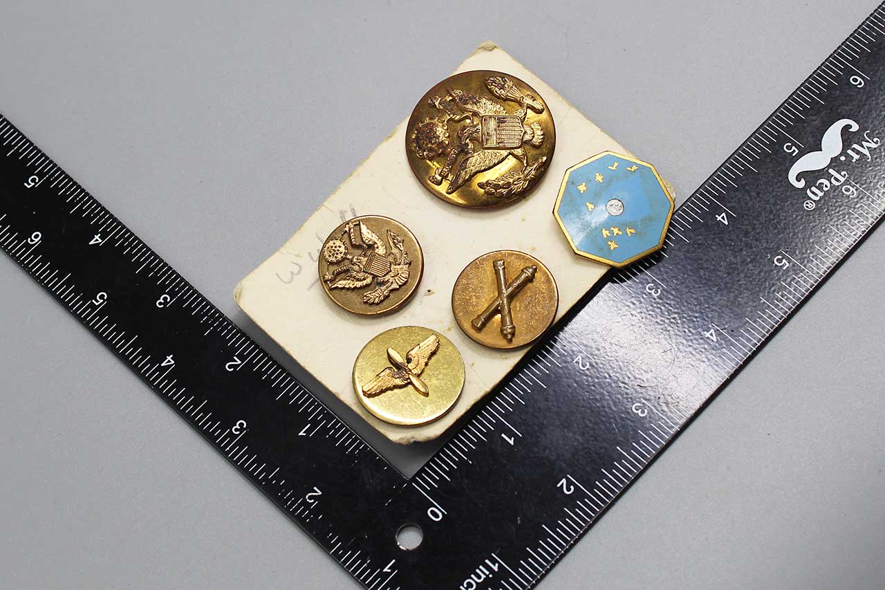 United States Group five Army Insignia. All these have screw post type attachments. These appear to be most likely 1940s era. Worn condition.